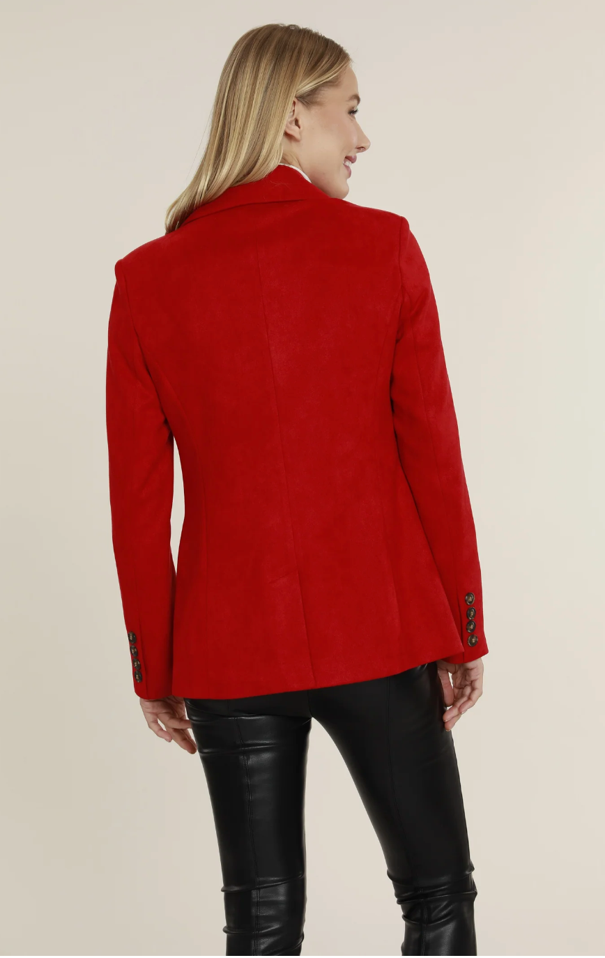 Faux Suede One Button Red Blazer