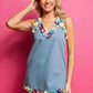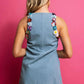 Floral Trim Denim Tank Dress