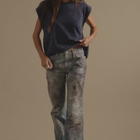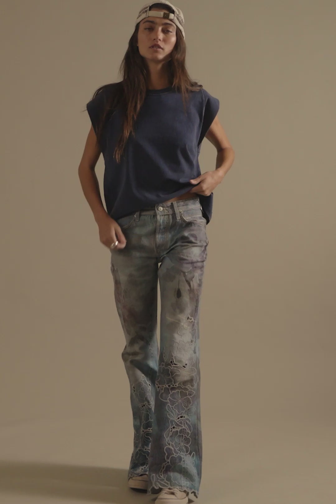 So bold barrel jeans from our We the Free collection featured in a mid-rise fit with subtle distressed detailing and wide-legs that taper at the ankle.