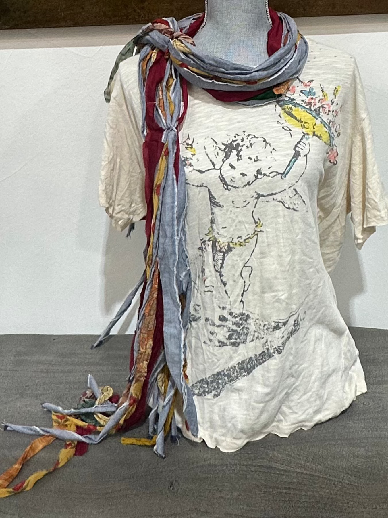 These handmade fringe scarves are stitched Kantha Style in 3 places to secure the fringes.
