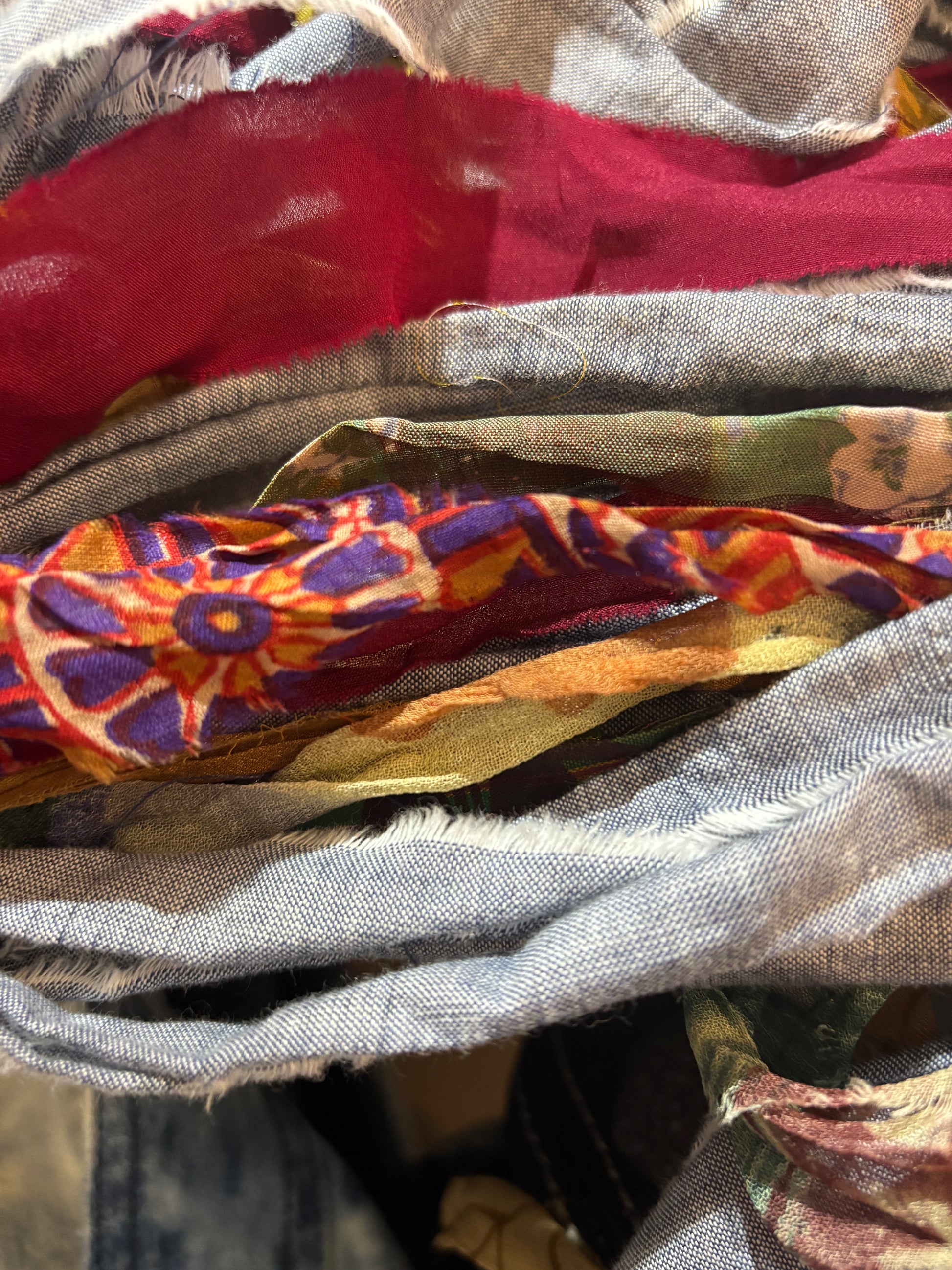 Hand torn & dyed Silk ribbon yarn made from 100% reclaimed vintage Sari Silk
