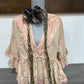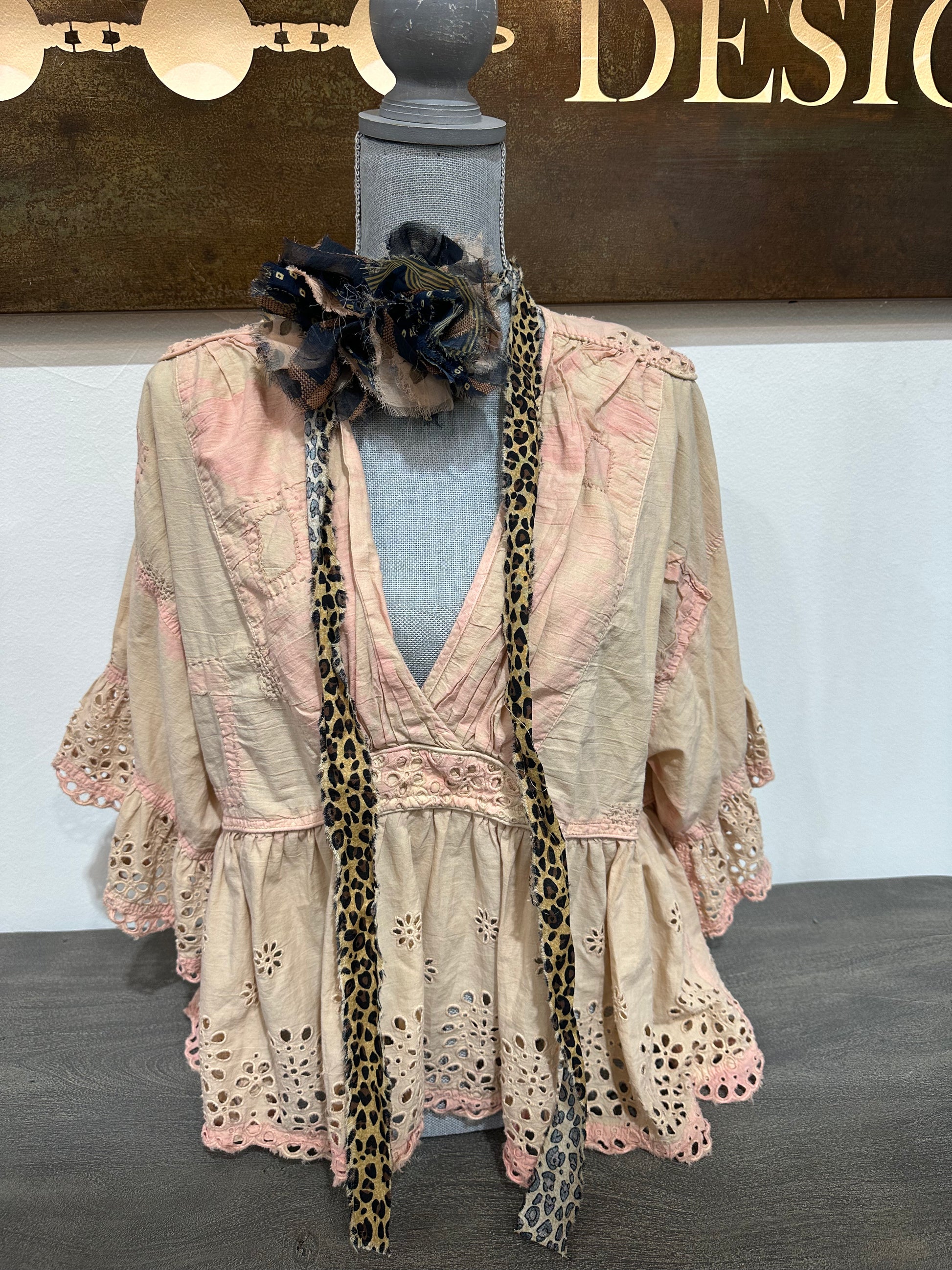 Fringe Poof w/ Brwn Blck Prints w/ animal print tie