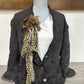 Fringe Poof w/ Brown Pink Floral & Animal Print Tie