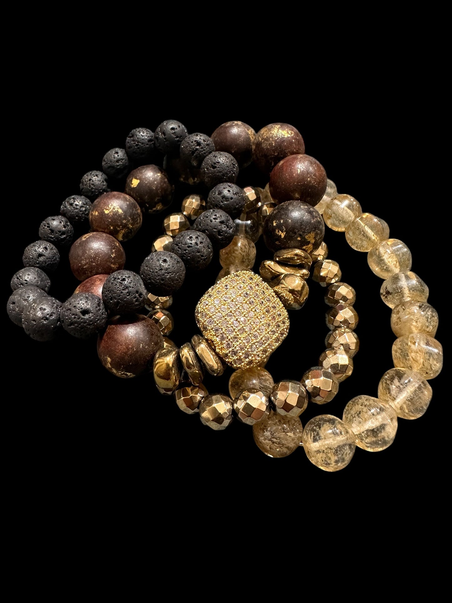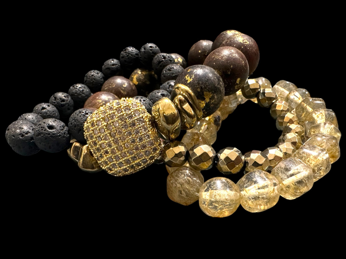 Beautiful Wooden Beads with Gold Accents Irregular Pyrite With Square Cz Bead.