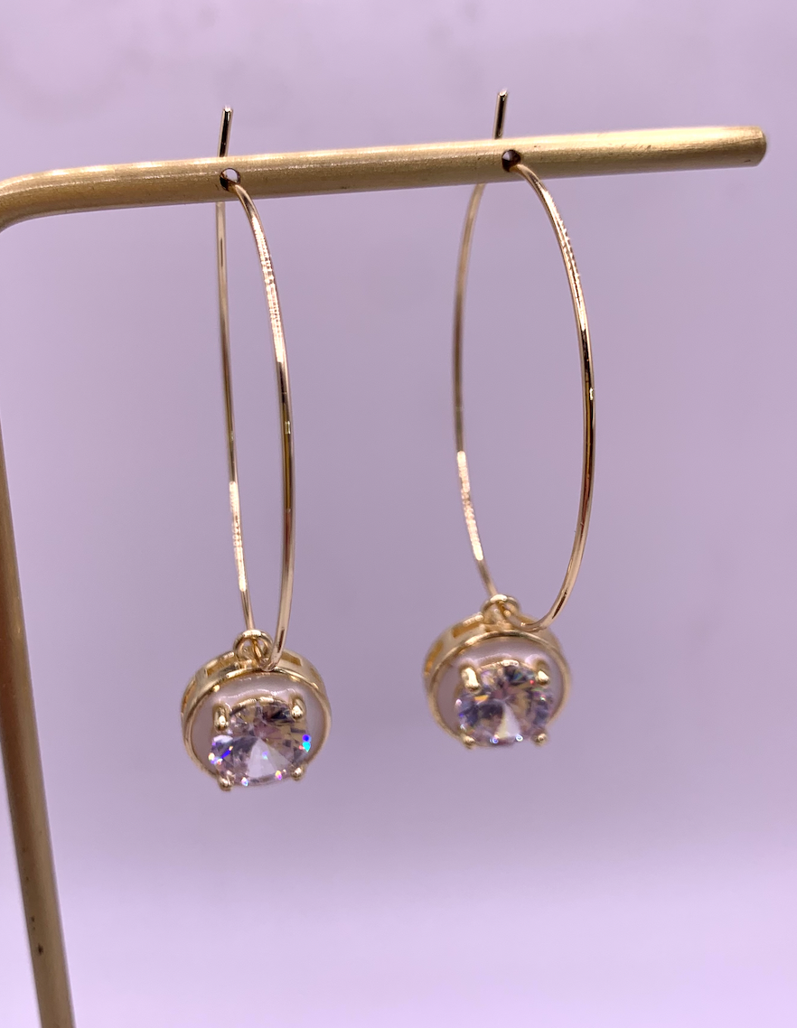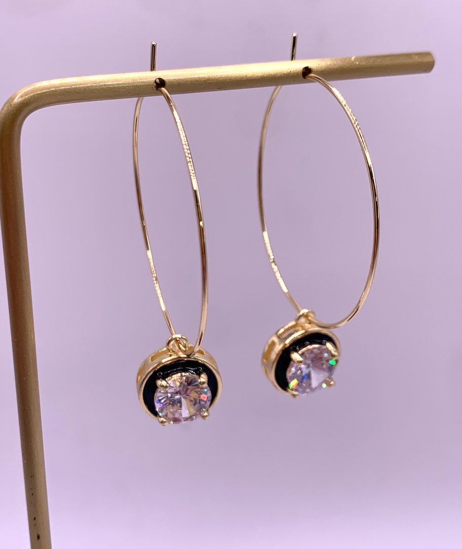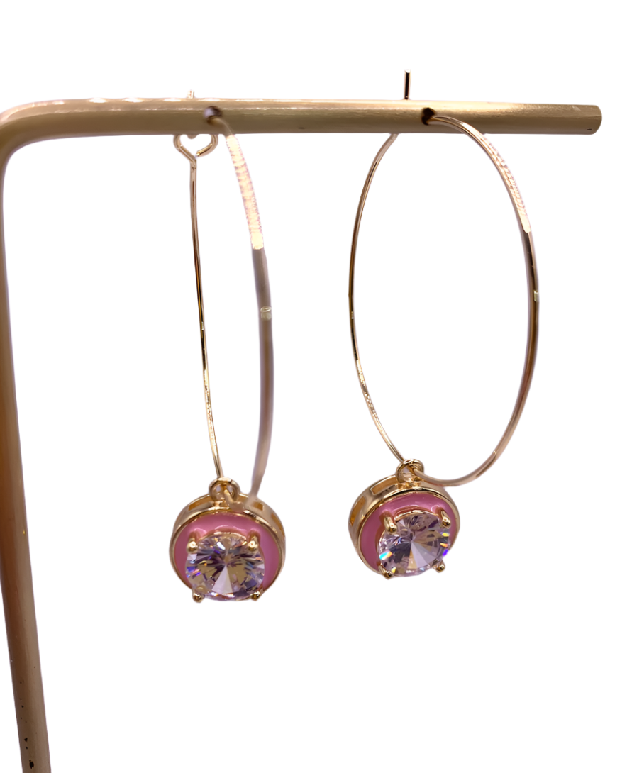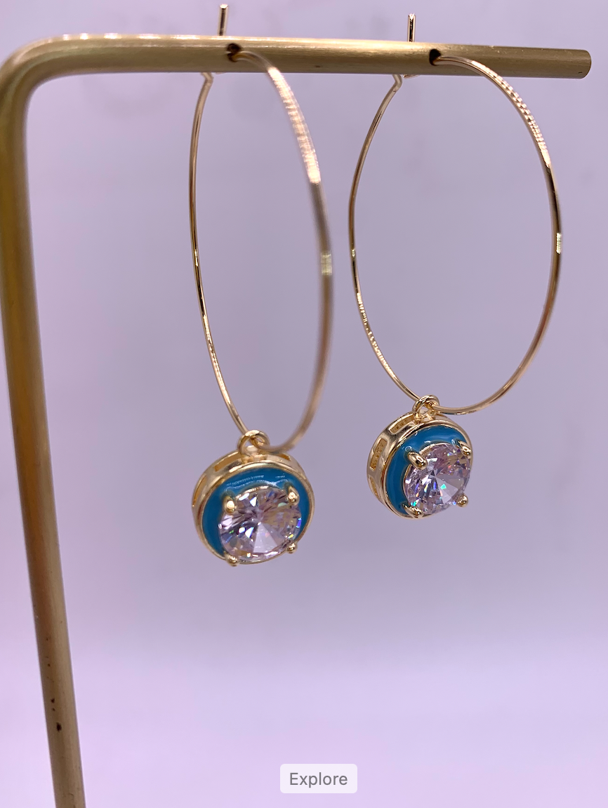 1 1/4 Inch 14K Gold Plated Hoop with Round Colorful Enamel and CZ pendant. Pendant is about 1/4 inch Round.