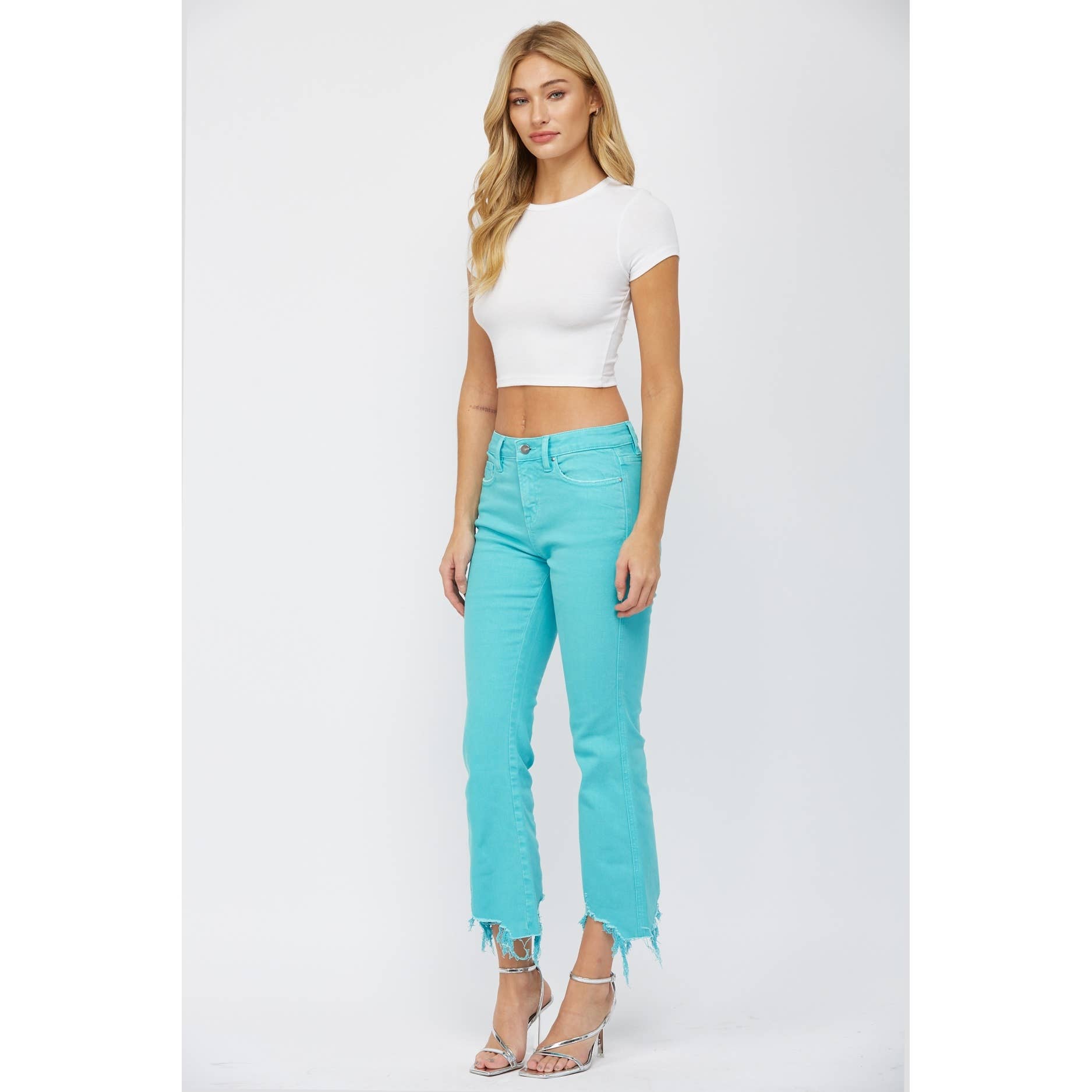 Discover the perfect blend of comfort and style with Mica Denim's High Rise Crop Flare jeans. Crafted with the essence of unfussy, effortlessly chic, and laid-back California Cool, these jeans are designed to appeal to every woman's unique style. Staying true to the rich tradition of denim, we offer this trendy cut, seamlessly blending innovation with timeless styles. Our commitment to exceptional service and attention to detail shines through in this piece, designed to let your inner beauty radiate. Join us on this denim journey, and let your inner shine flow with Mica Denim.