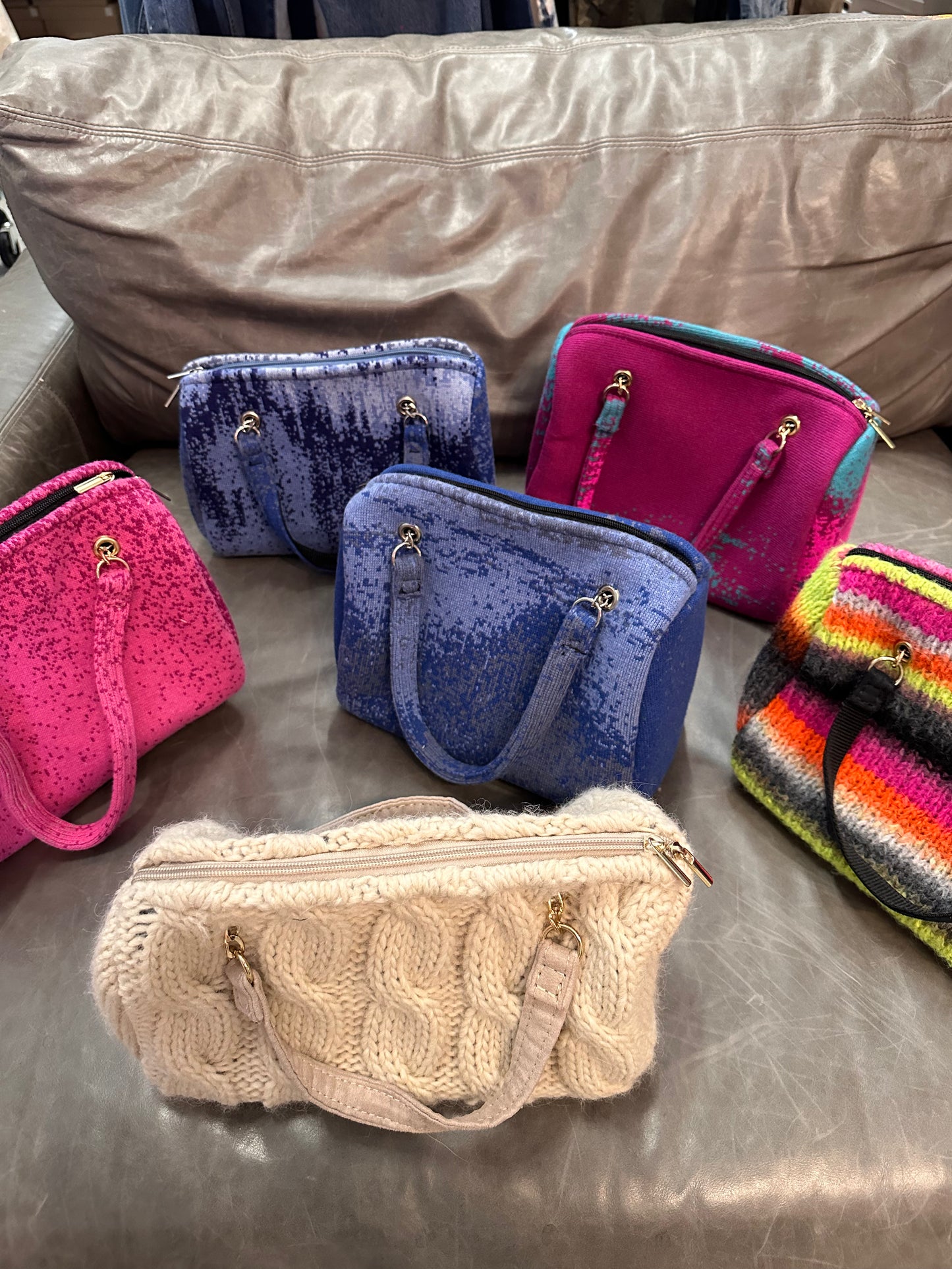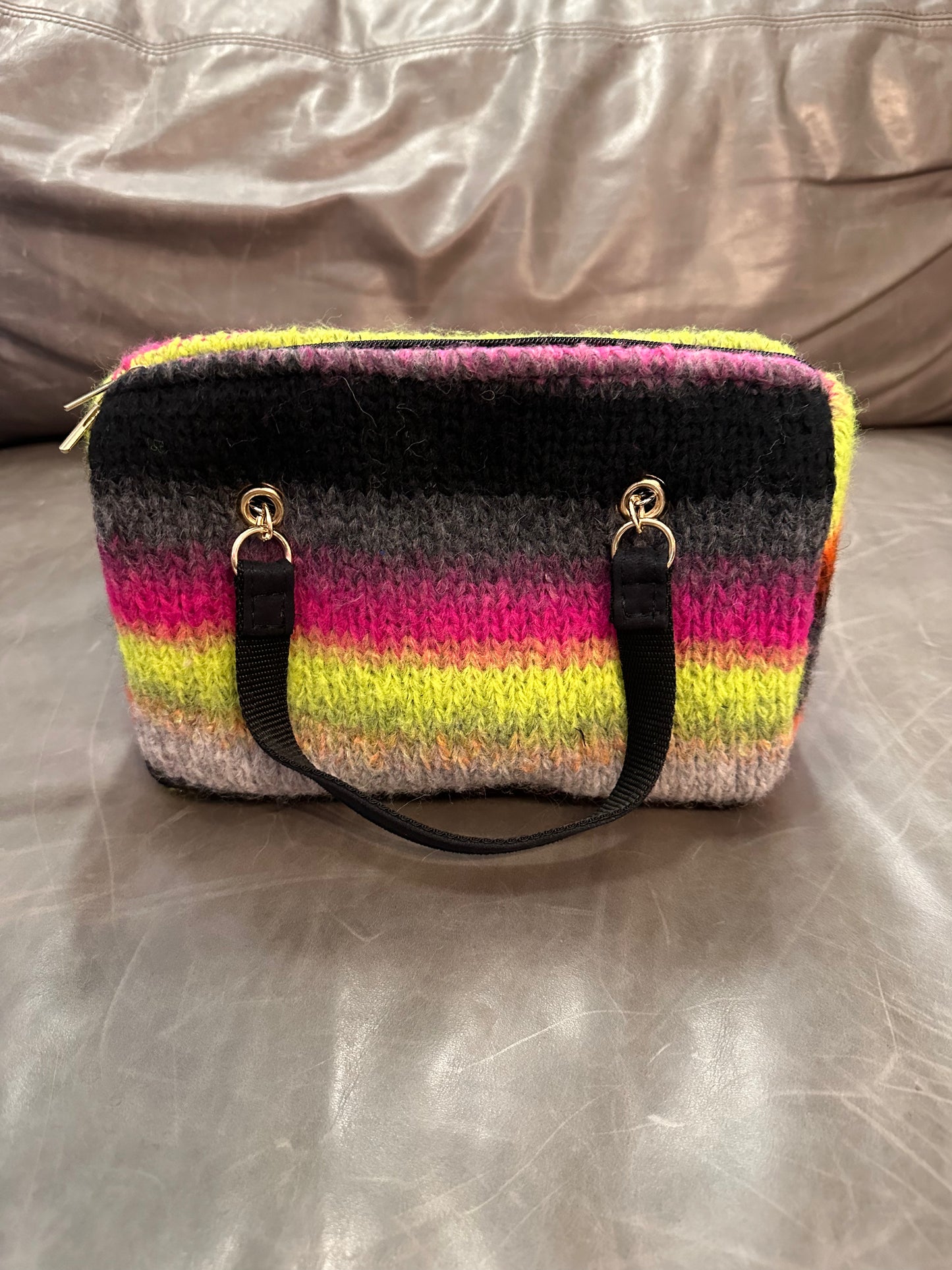 Gorgeous and vibrant statement Purses. 100% Wool Bags from Italy Leather Handles. Zip Closure and internal side pockets. Aproxamately 10 by 7 by 4 inches