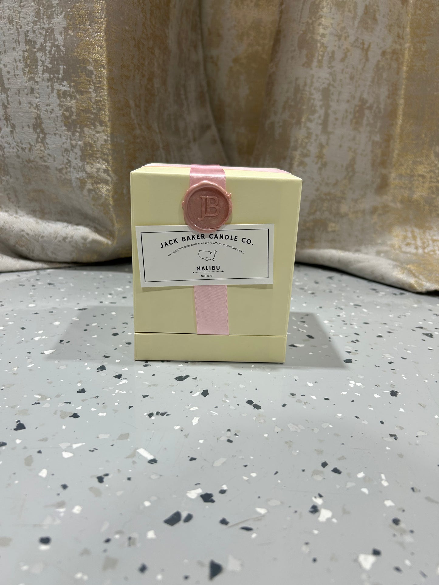 Enjoy an exquisitely made soy candle in the scent, "Malibu."