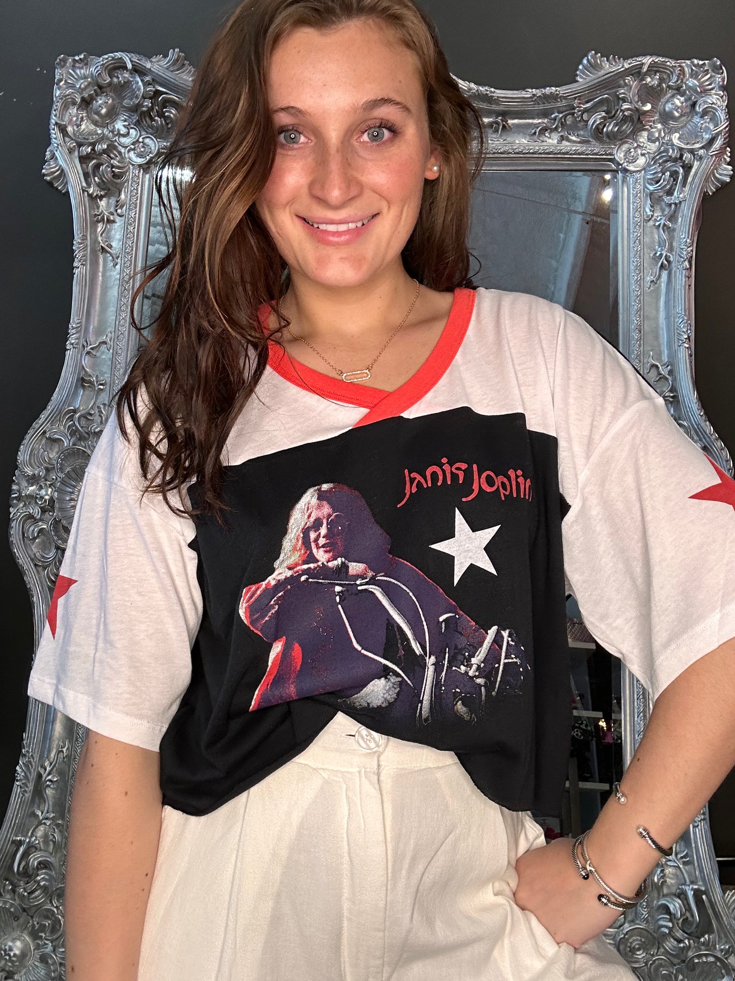 Get ready to channel your inner rockstar with our Bella Jersey Janis Joplin Classic Motorcycle Levi Tee. This tee is not just any ordinary piece of clothing, it's a statement that screams "legends only!"