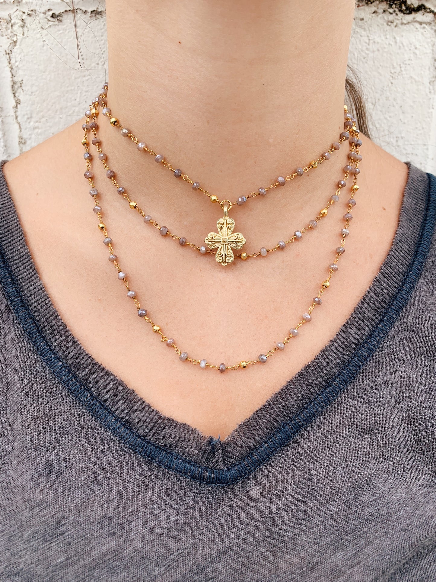 - size : triple layer necklace [ 13.5 inches, 15 inches & 18 inches with 3 inch spike // 2 inch extender ]