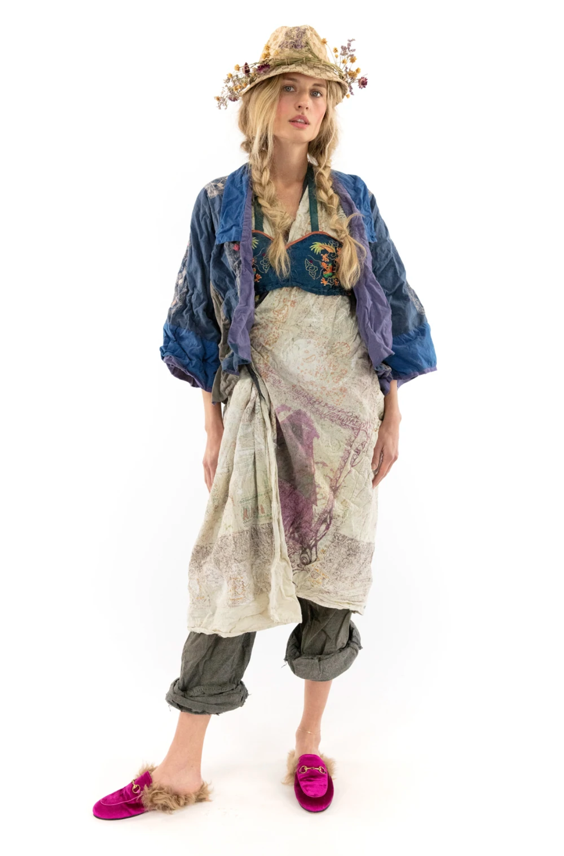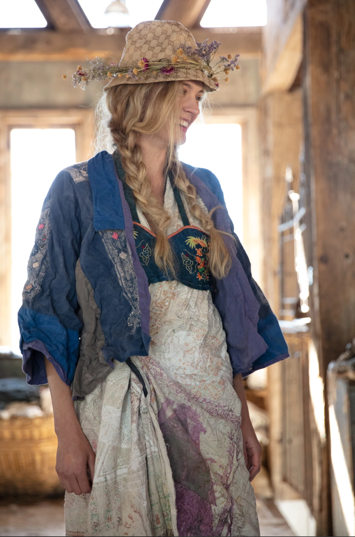 Defining shades of blue is a task for poets and painters, physicists and philosophers. But birds and flowers do it best. Brandish the entire spectrum from within our azure Flora Mae Kimono.