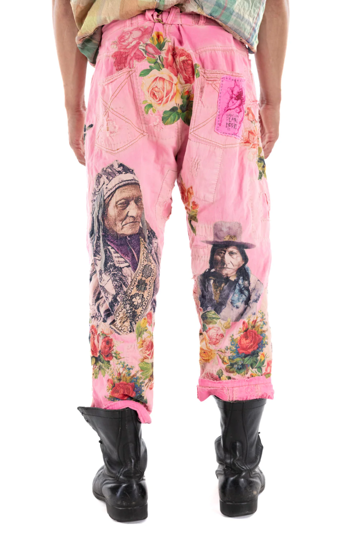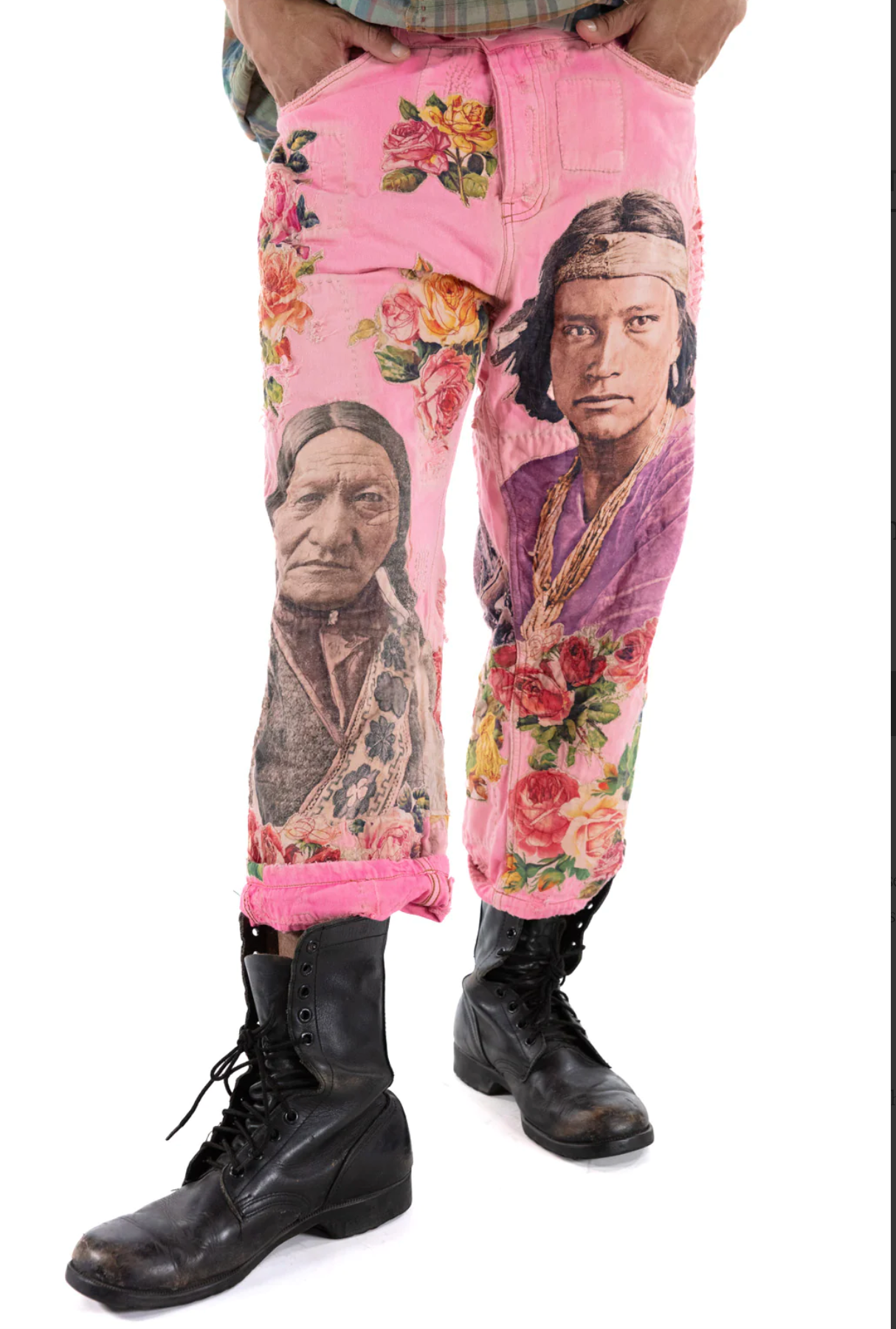 Speak, even if your voice shakes, for those whose history calls for listening. The Great Spirit Miner Denims are a bright-bold reverberance, framed in divine roses.