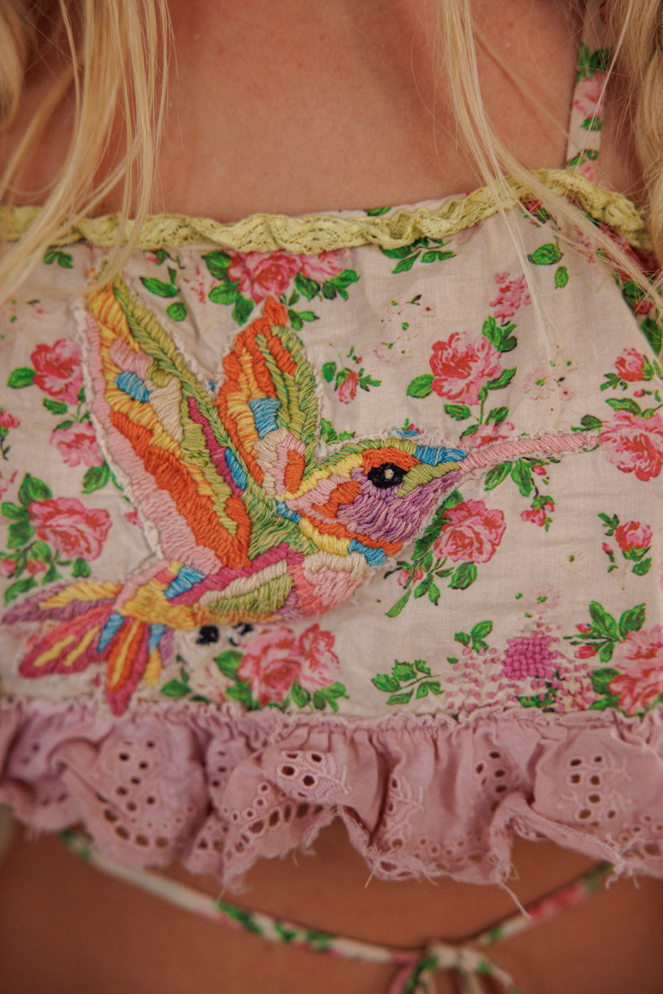 - Embroidered Hummingbird & Rose