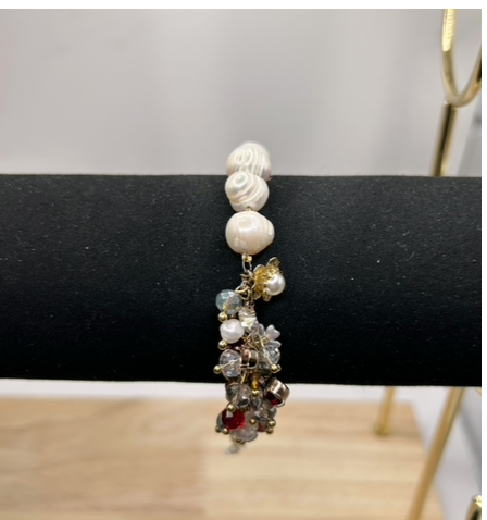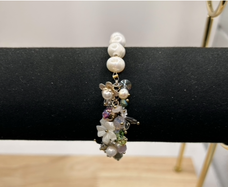 Beautiful 7 1/2 inch bracelet with Extender. Pretty Part Pearl and part dangling Flower beads and crystal seed beads. Looking for that unique gift or something special for yourself. This is the bracelet.