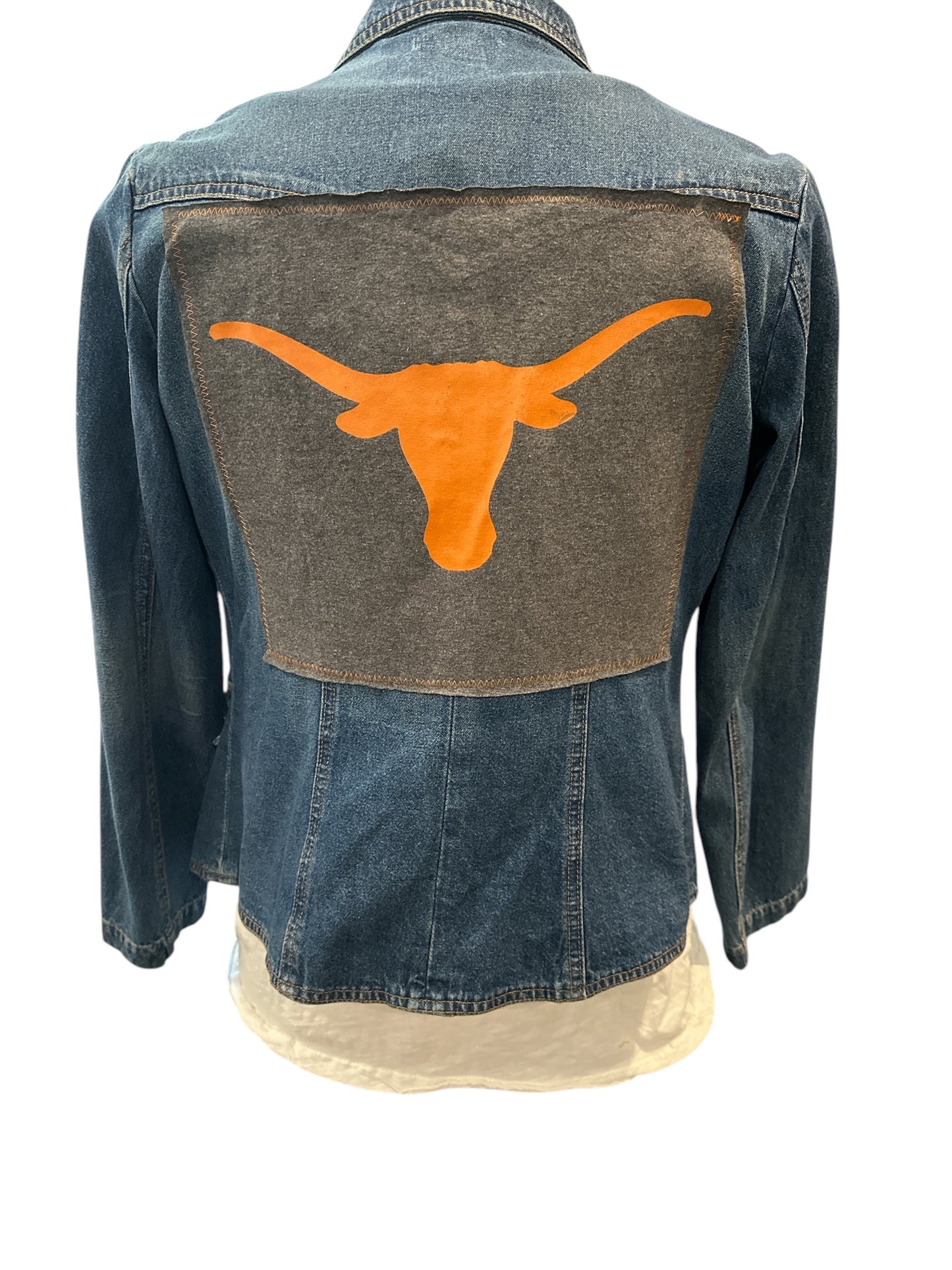 University of Texas Repurposed Vintage Jean Jacket. This Jacket fits like a Large.