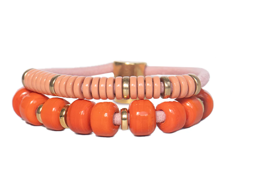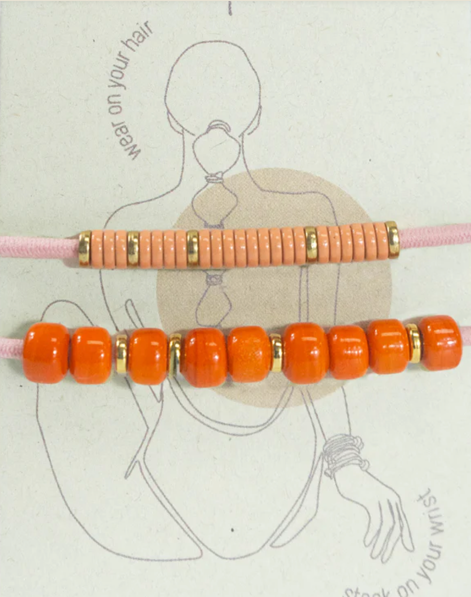 Add a zesty twist to your ensemble with the POMELO beaded pair. These orange-toned beauties, accented with gold, are sure to gather compliments wherever you go. Not only do they keep your hair neatly in place, but they also add a stylish flair to your wrist.