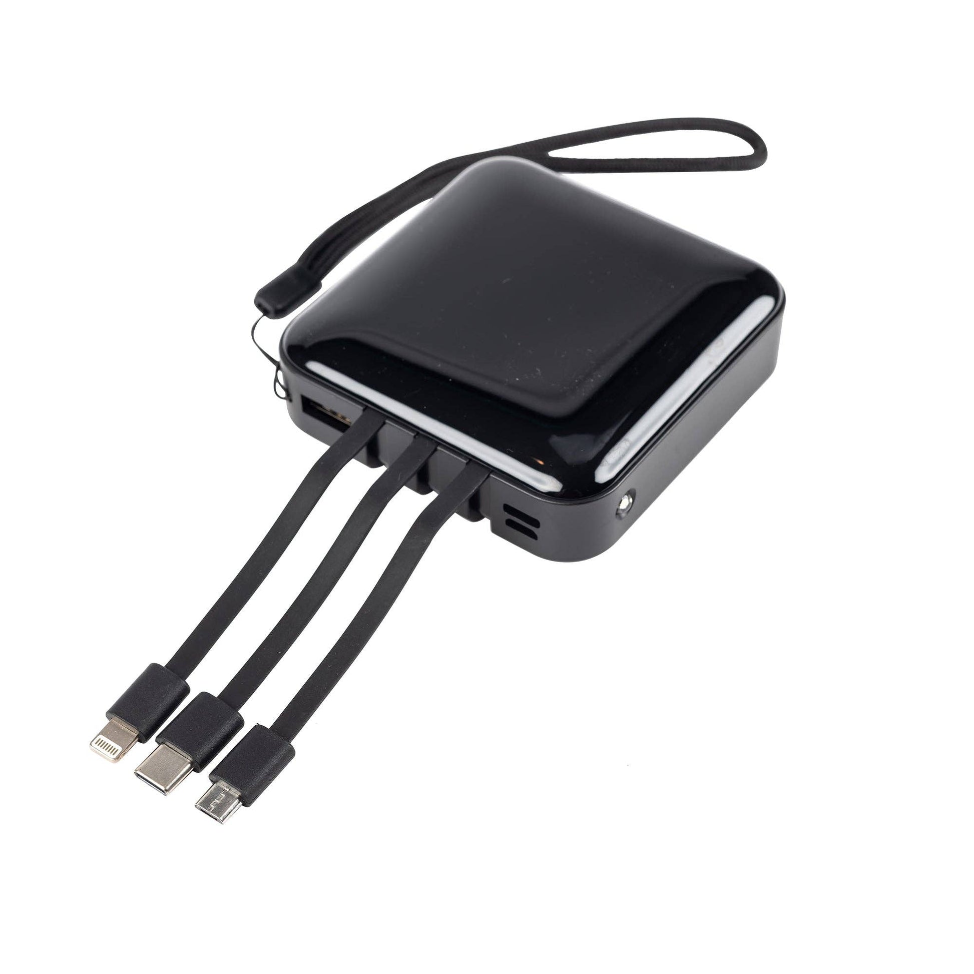 Never drain your battery again with the POWERplay Portable Charging Station. With built-in Micro USB, Type-C, and Lightening charging cables and 20,000mAh high polymer lithium power supply you can charge multiple devices at once. See how much battery is left with the LED battery display and quickly recharge via USB. Includes lanyard and dual flashlight design.