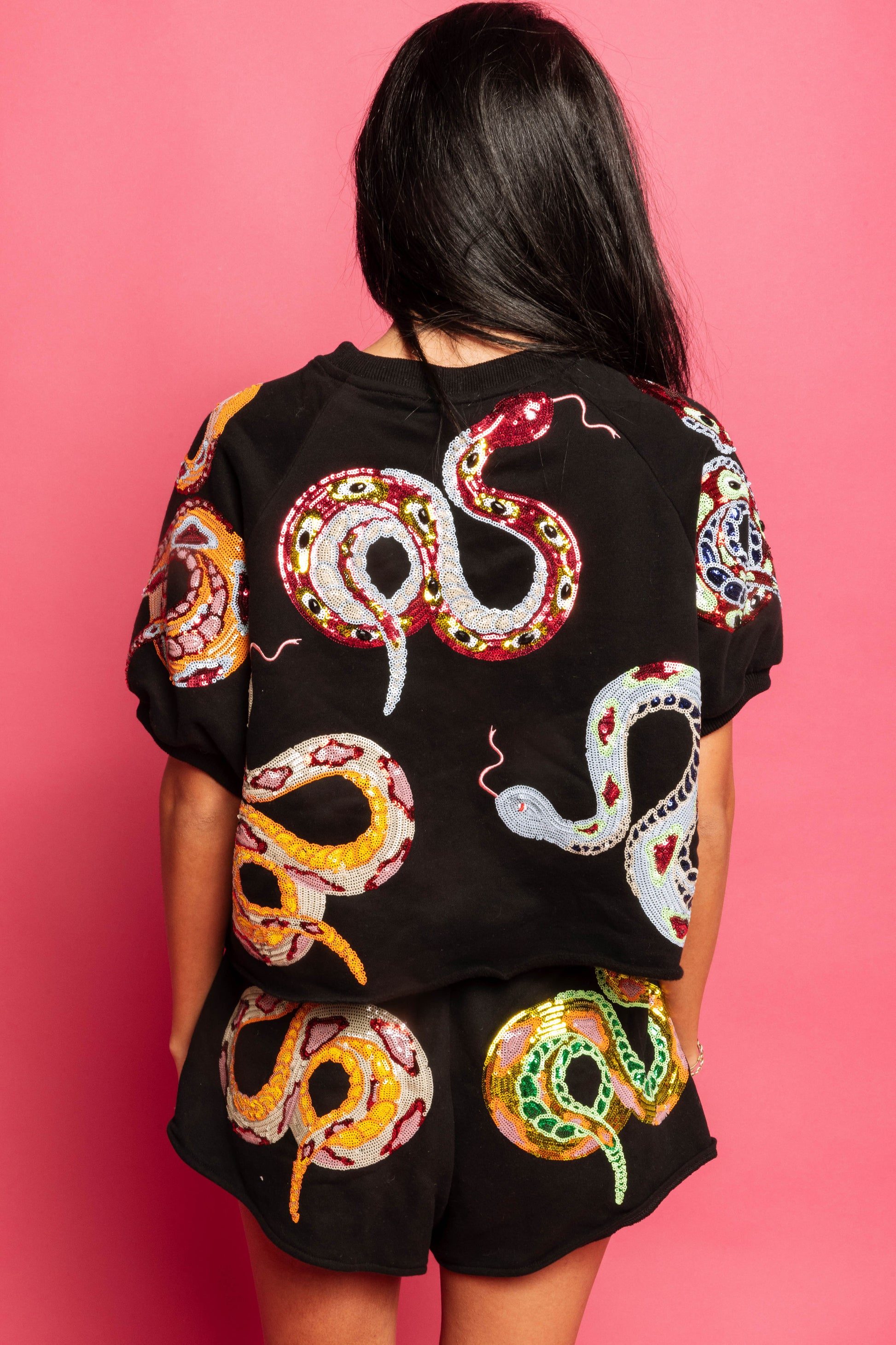 We love these Queen of Sparkles Snake shorts! Goes great with matching top Sold Separately. Dare to be different!