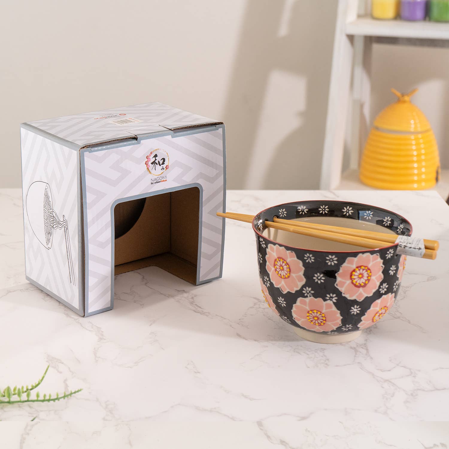 Sakura Cherry Design 18oz 5.25"D Bowl With Chopsticks Set