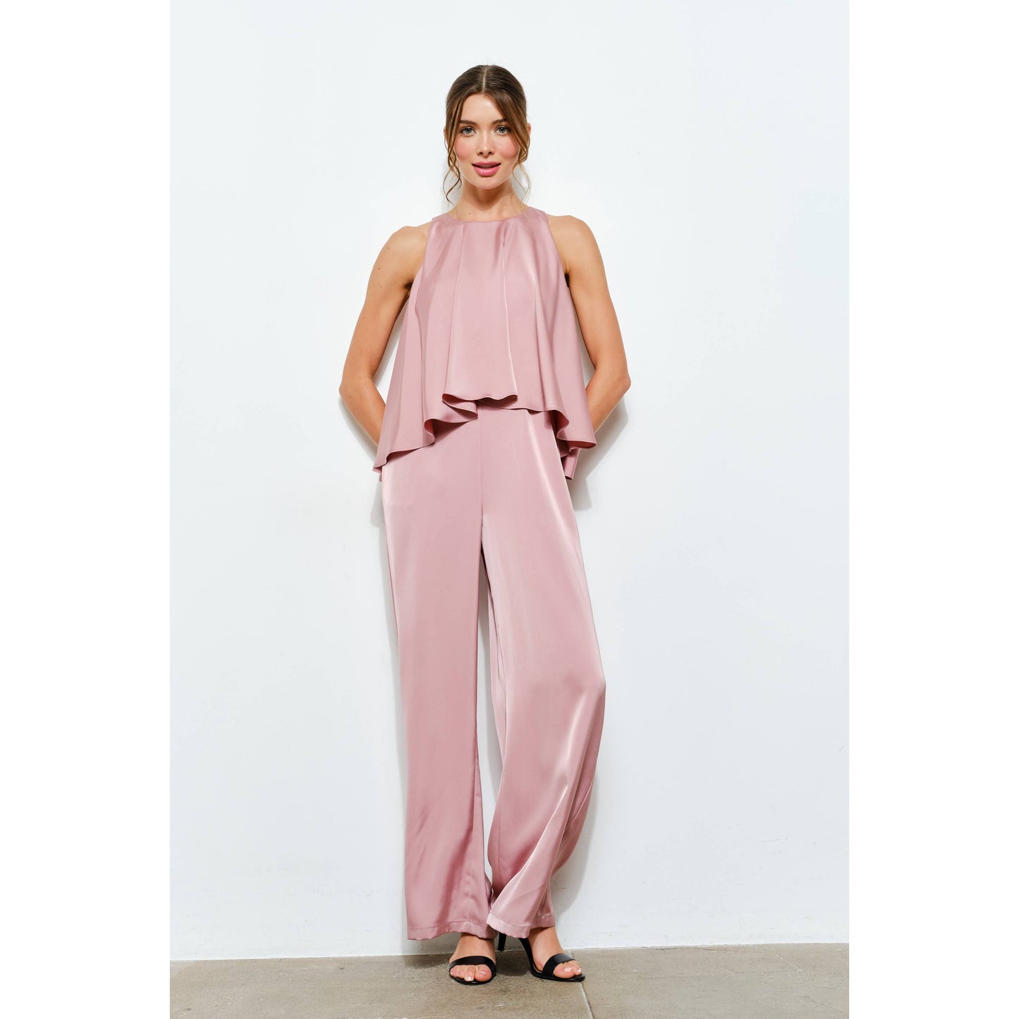 Satin Round Neck Sleeveless Jumpsuit