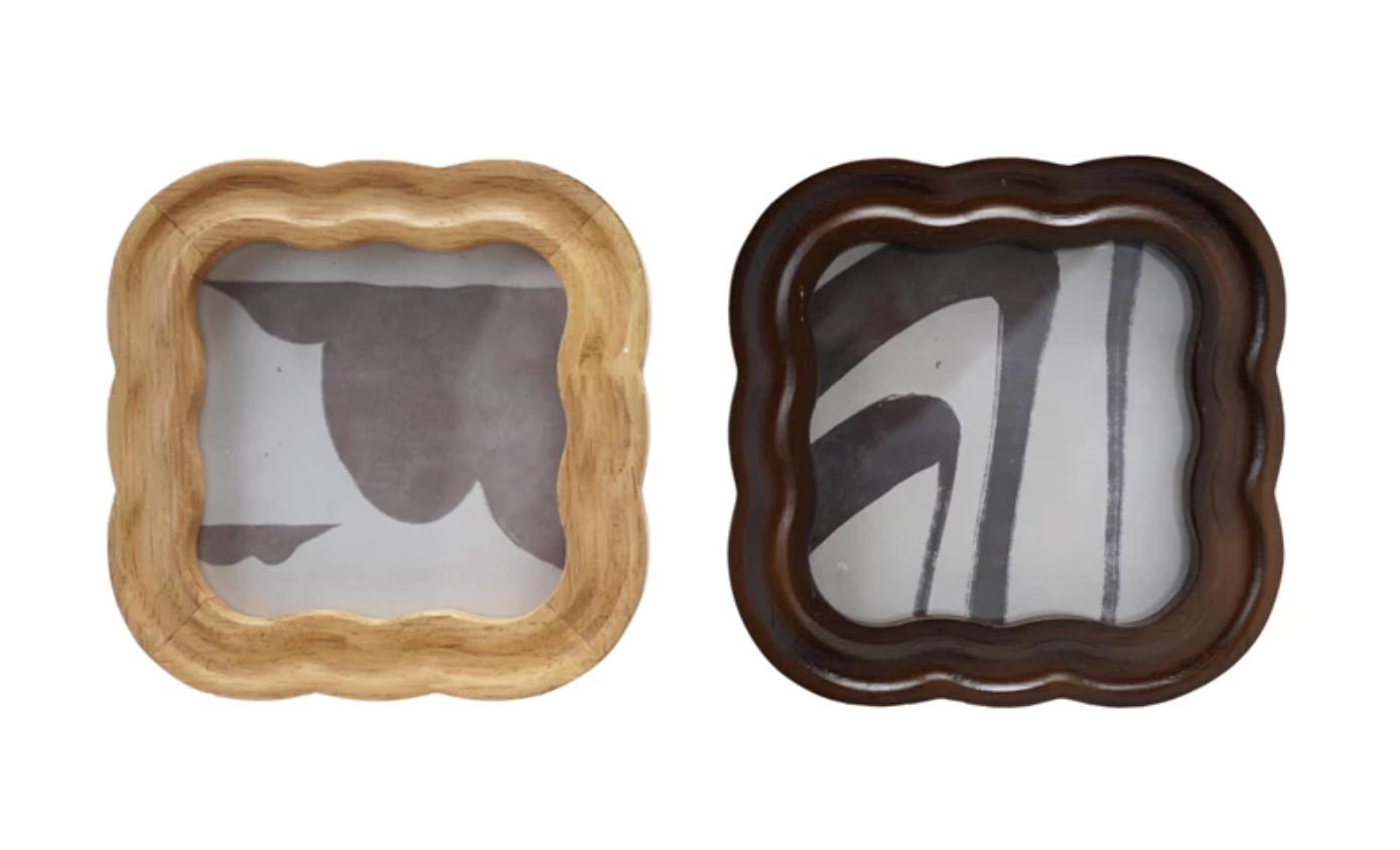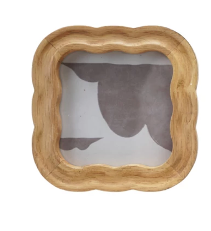 5" Square Rubberwood & MDF Scalloped Photo Frame, 2 Colors (Holds 4" x 4" Photo) (Hangs or Sits)