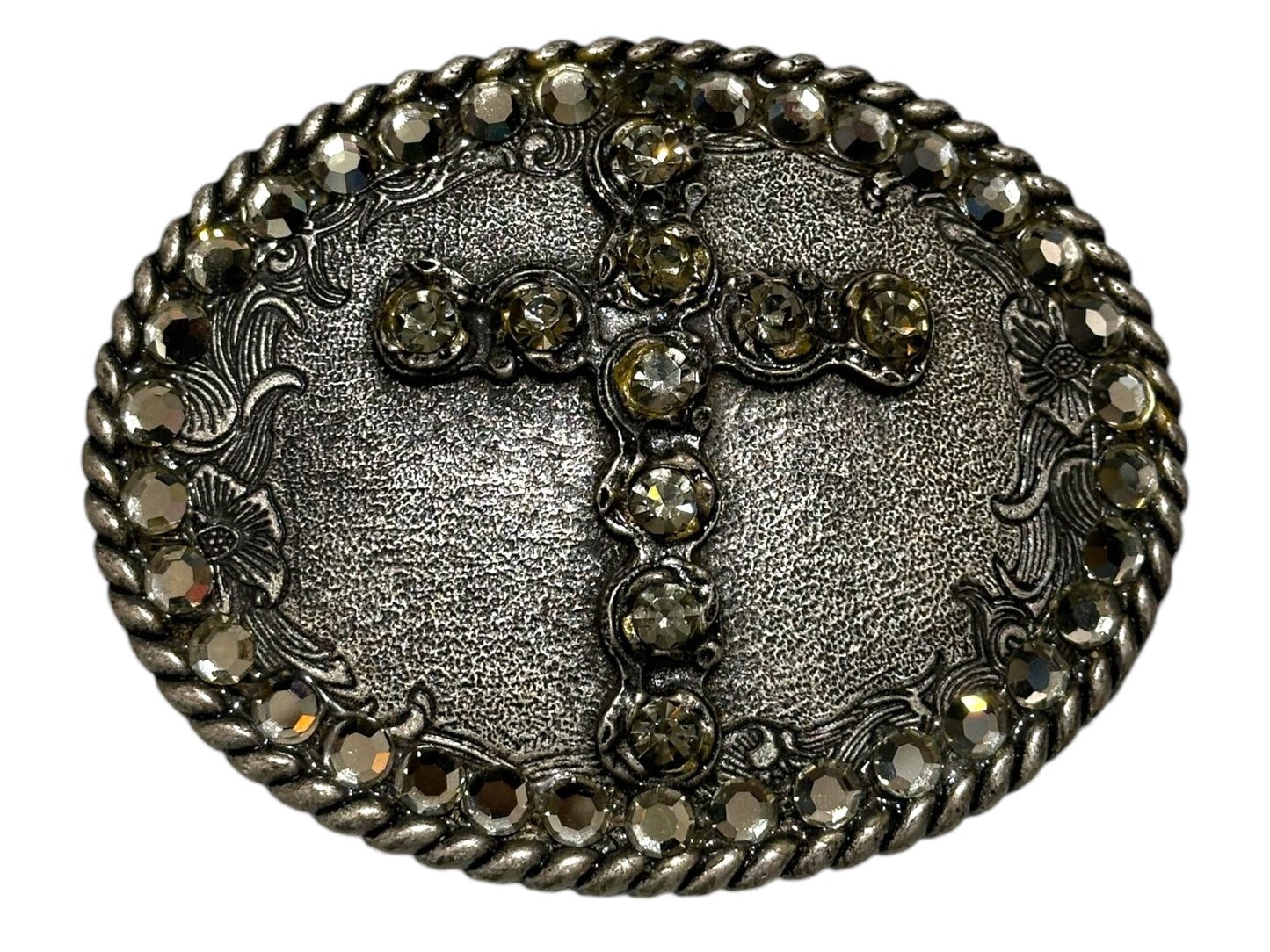 Silver and Rhinestone Cross Belt Buckle. Pair with any of our belts for a great look.