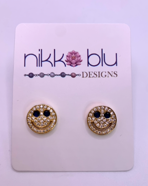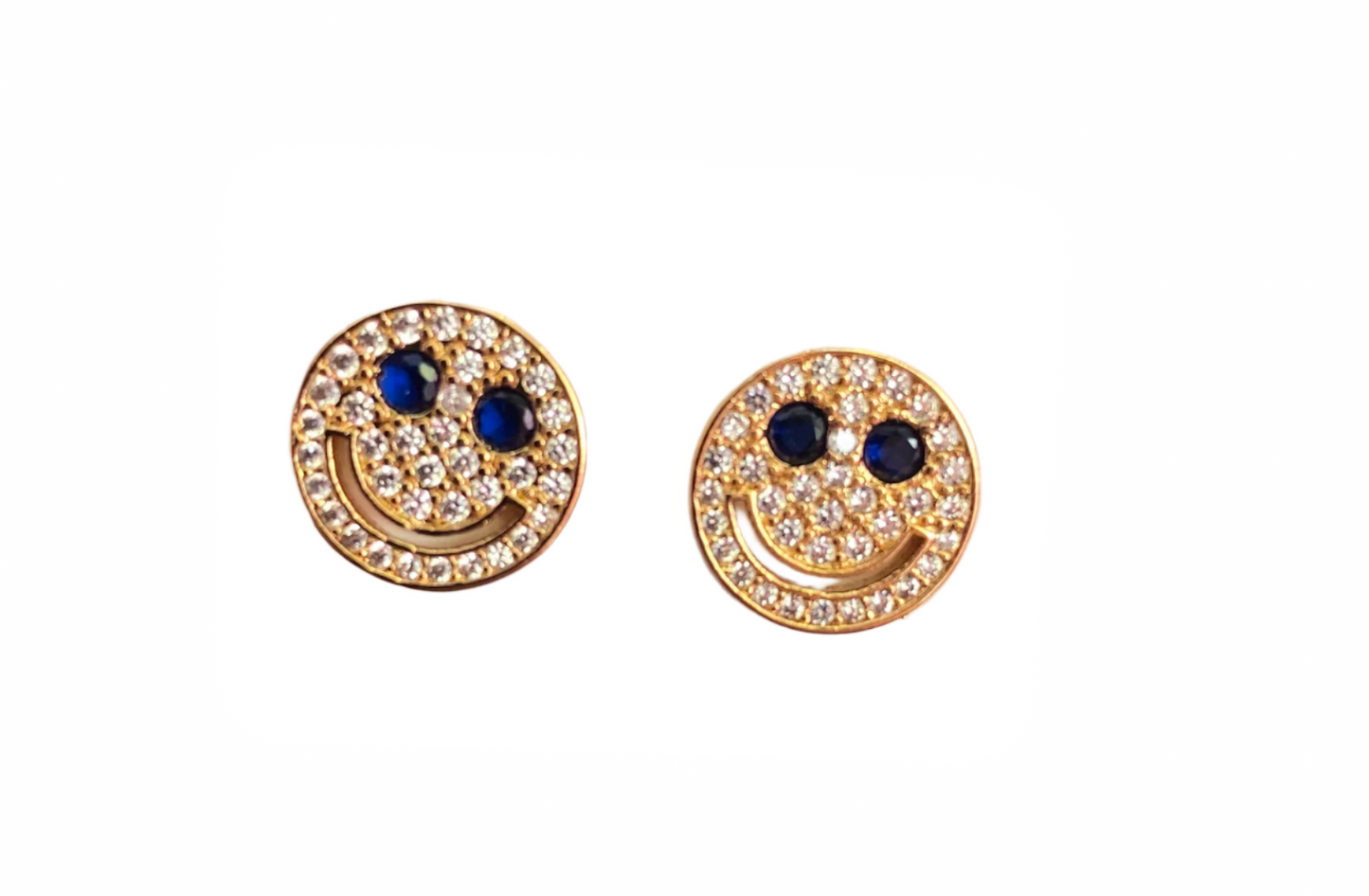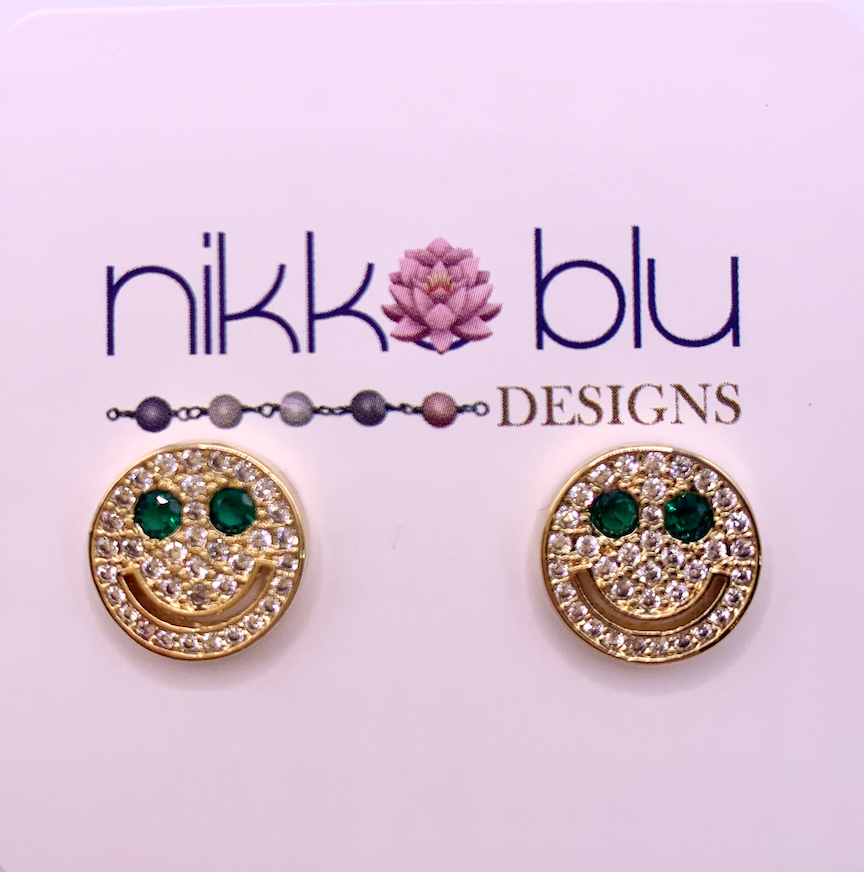 Soo cute! Smile face rhinestone earrings come with blue pink Green or Black eyes