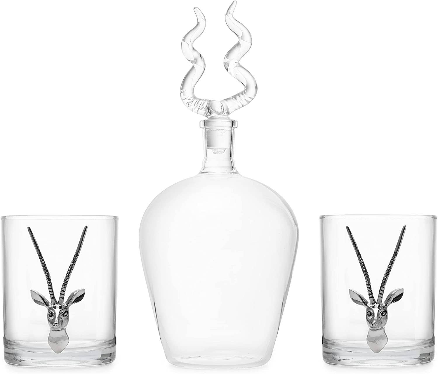 Stag Antler Whiskey Decanter Set with 2 Stag 12oz Glasses