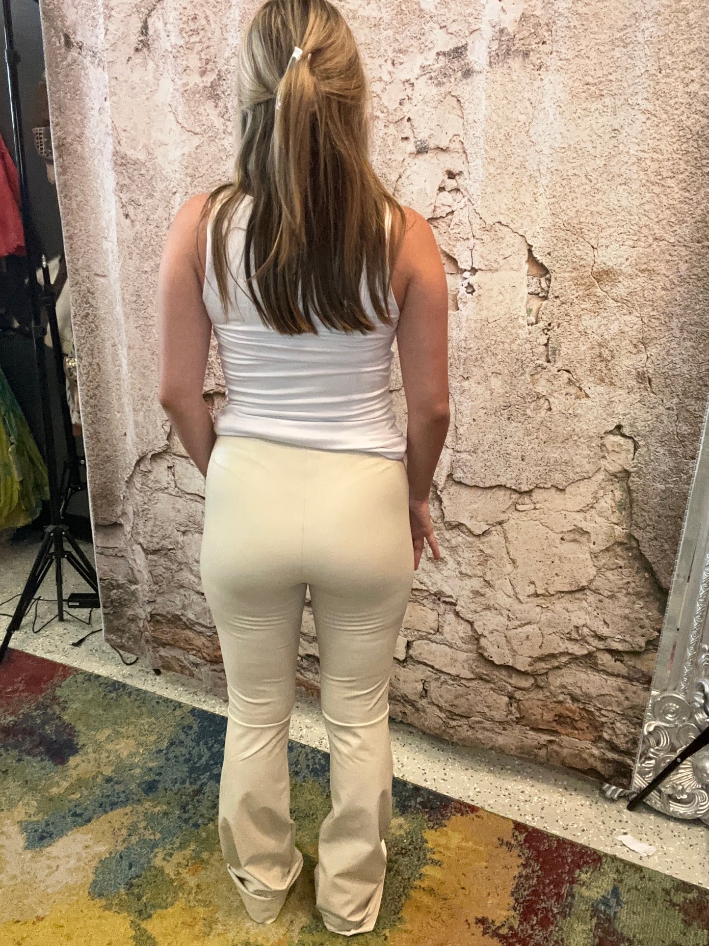 Citrine pants, by steve madden, high waisted, boot cut flared, faux leather, in the color black