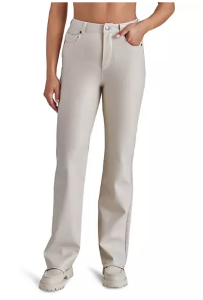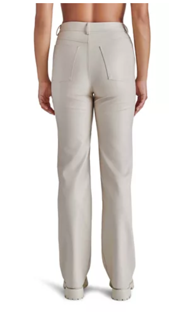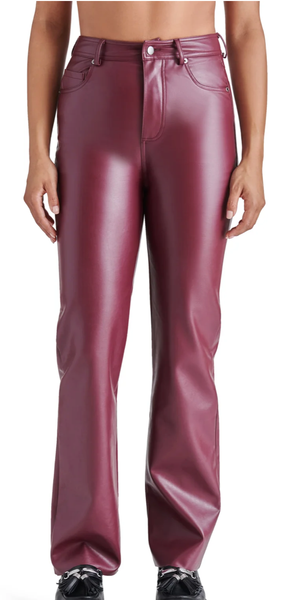 The LOREN pant features classic straight leg jeans styling, but updates the design with a faux leather construction.