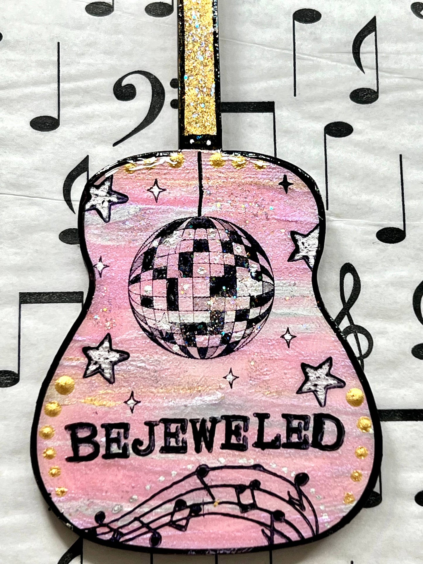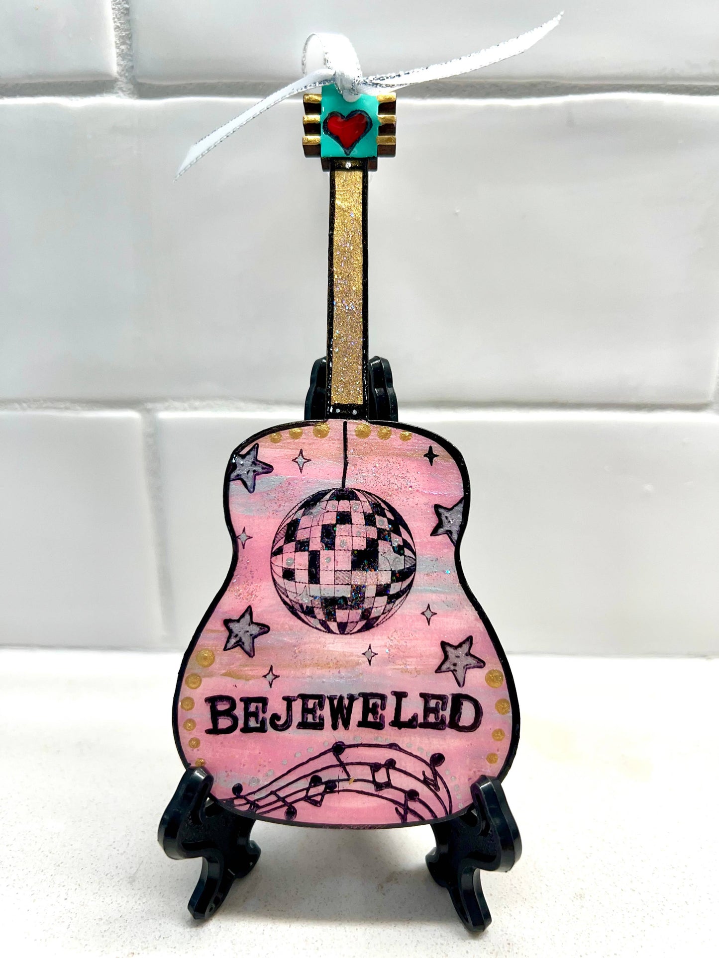 Taylor Swift ornament, BEJEWELED, hand painted mini guitar