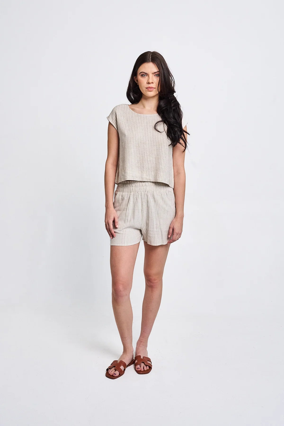 This luxuriously lightweight linen two-piece set is perfect to take you from running errands to lounging at home. The perfectly boxy top and pull-on shorts add to its casual but never boring vibe.
