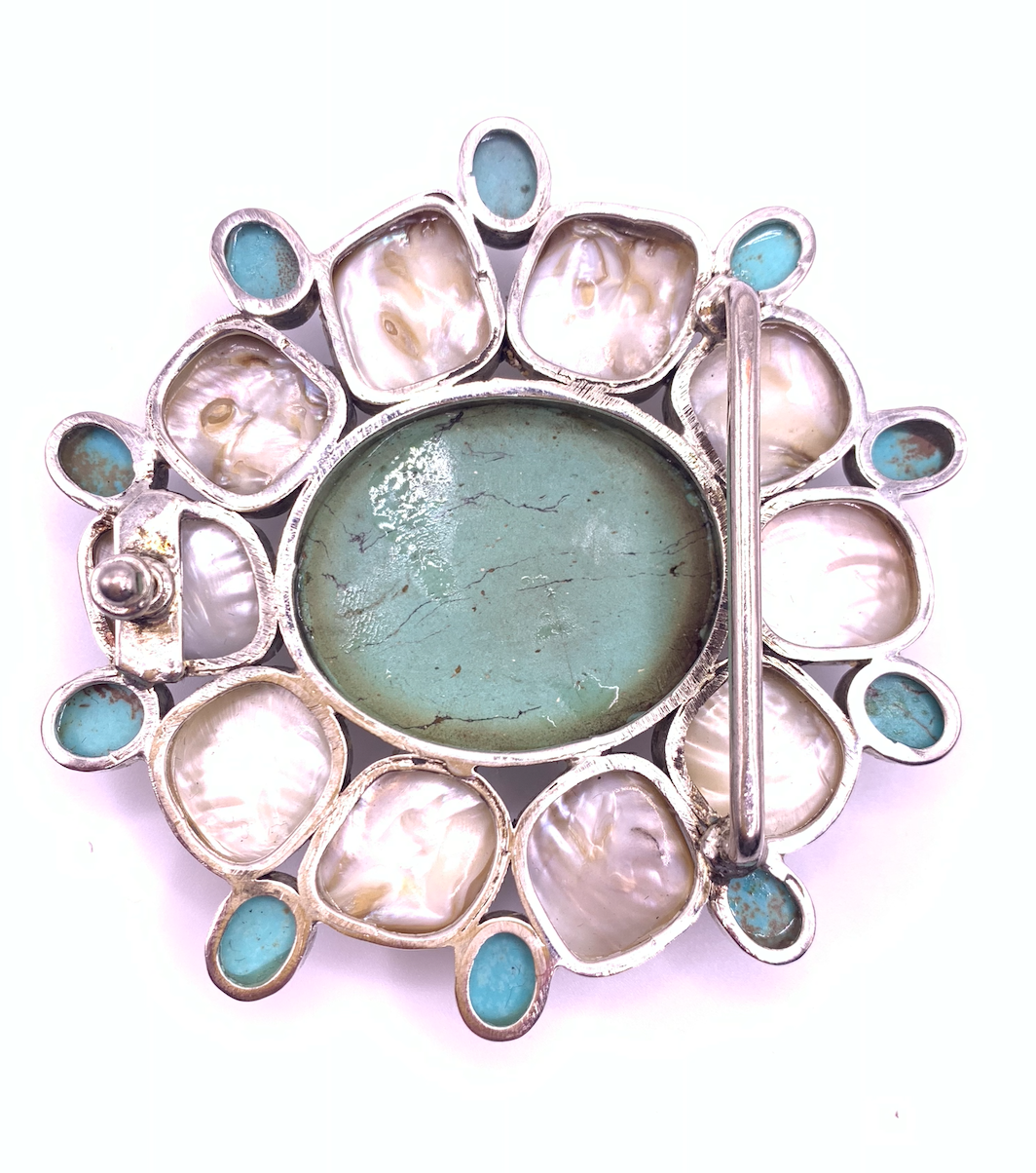 Belt Buckle is Approximately 3.25 Inches in diameter. Genuine Turquoise and Pearl set into this statement Buckle!!!