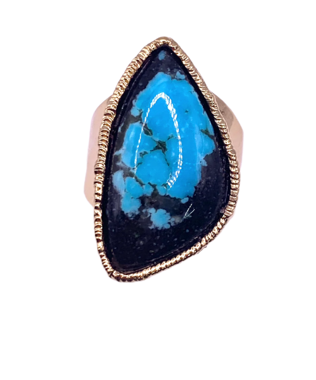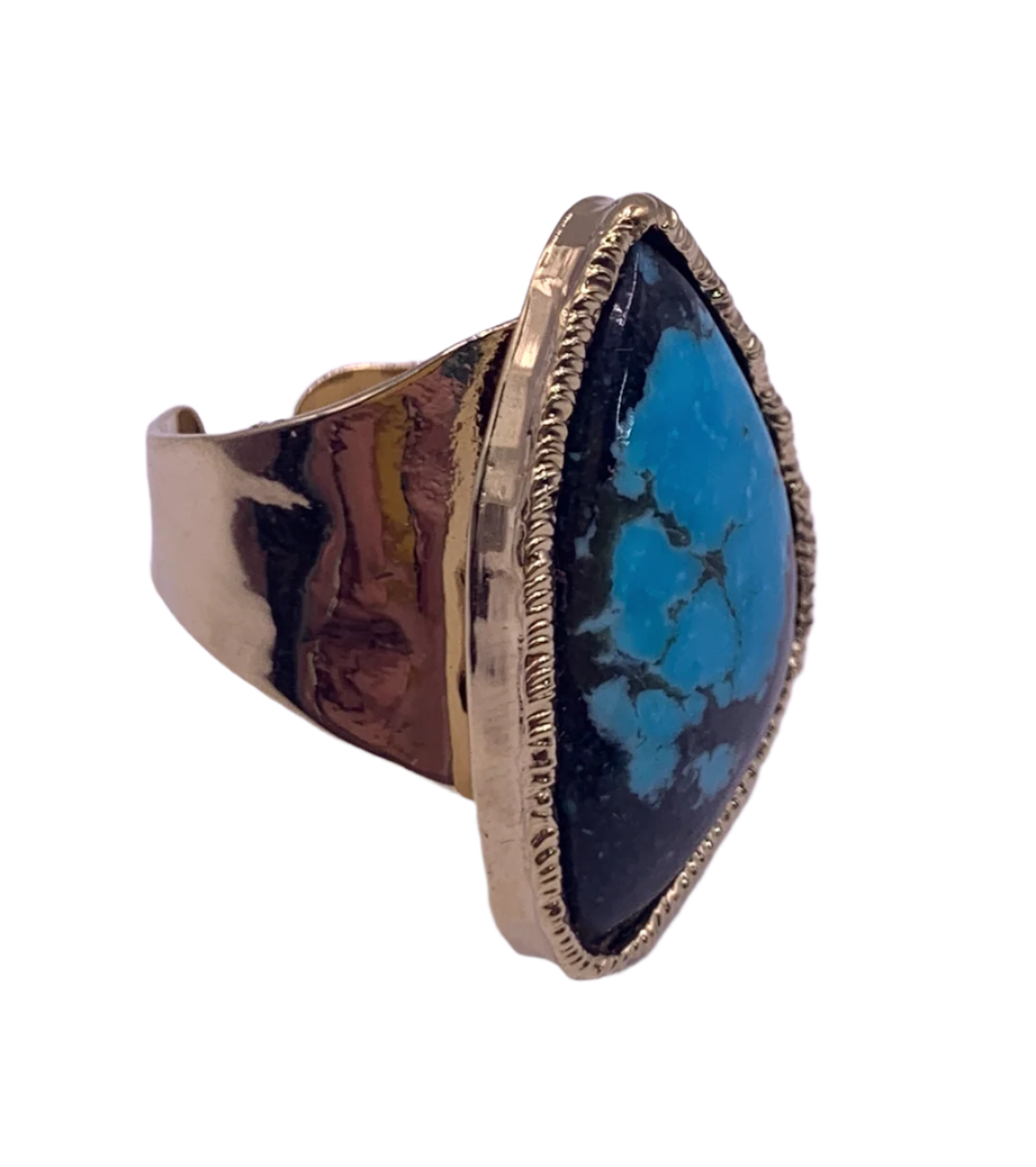 This Stunning Turquoise Ring is Double Plated in 18K Gold. The Band is adjustable.