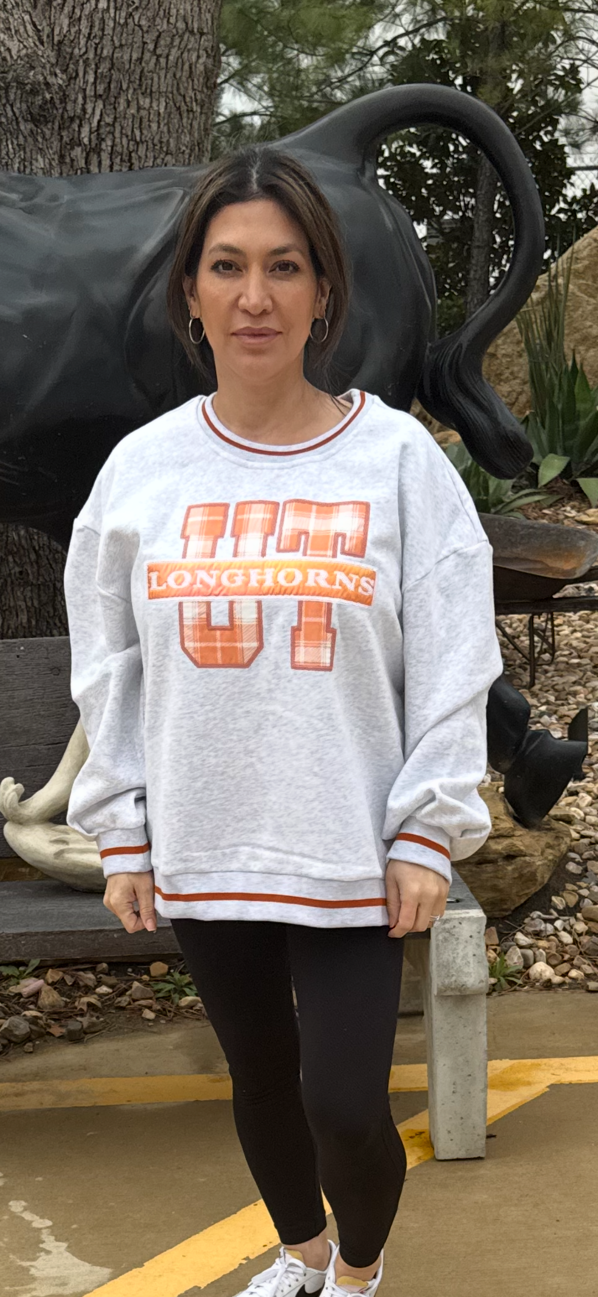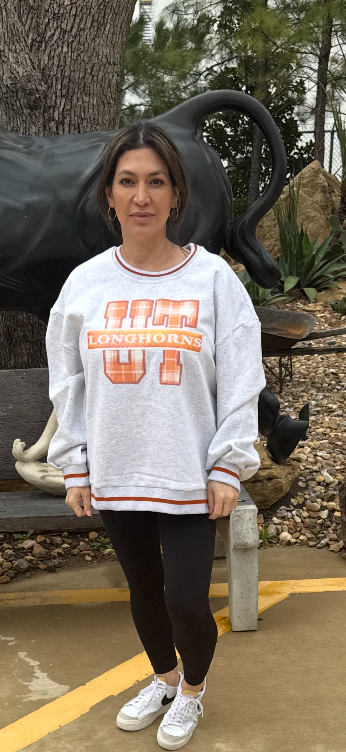 Hook EM' Horns We love this oversized sweatshirt from Queen of Sparkles! 85% cotton and 15 % polyester