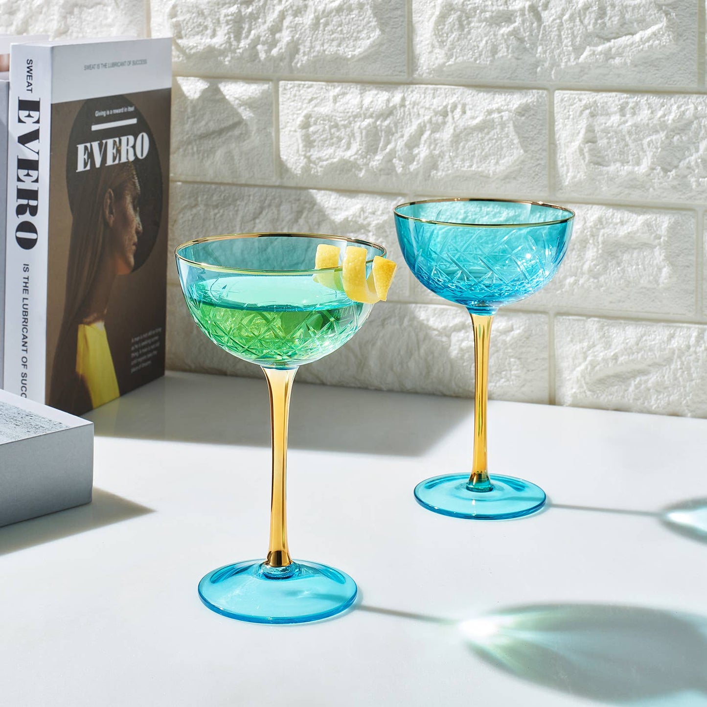 Vintage Art Deco Coupe Glasses | Set of 2 | Blue