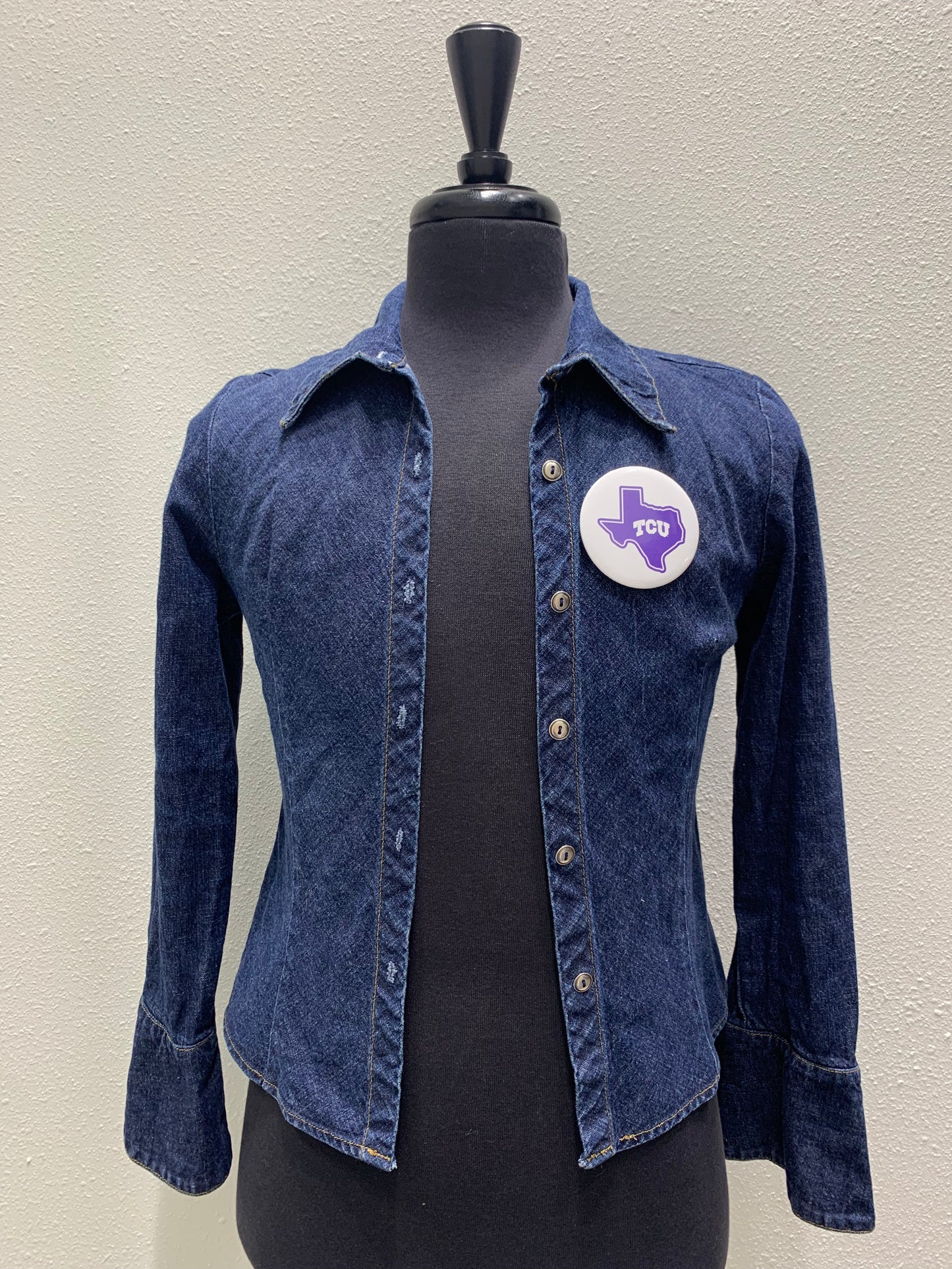 Vintage Repurposed TCU Jacket with a small flare sleeve. This jacket fits like a S-M