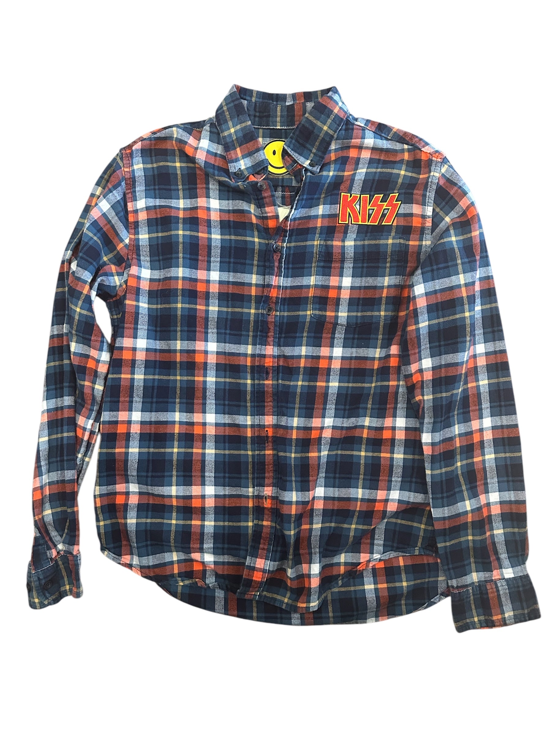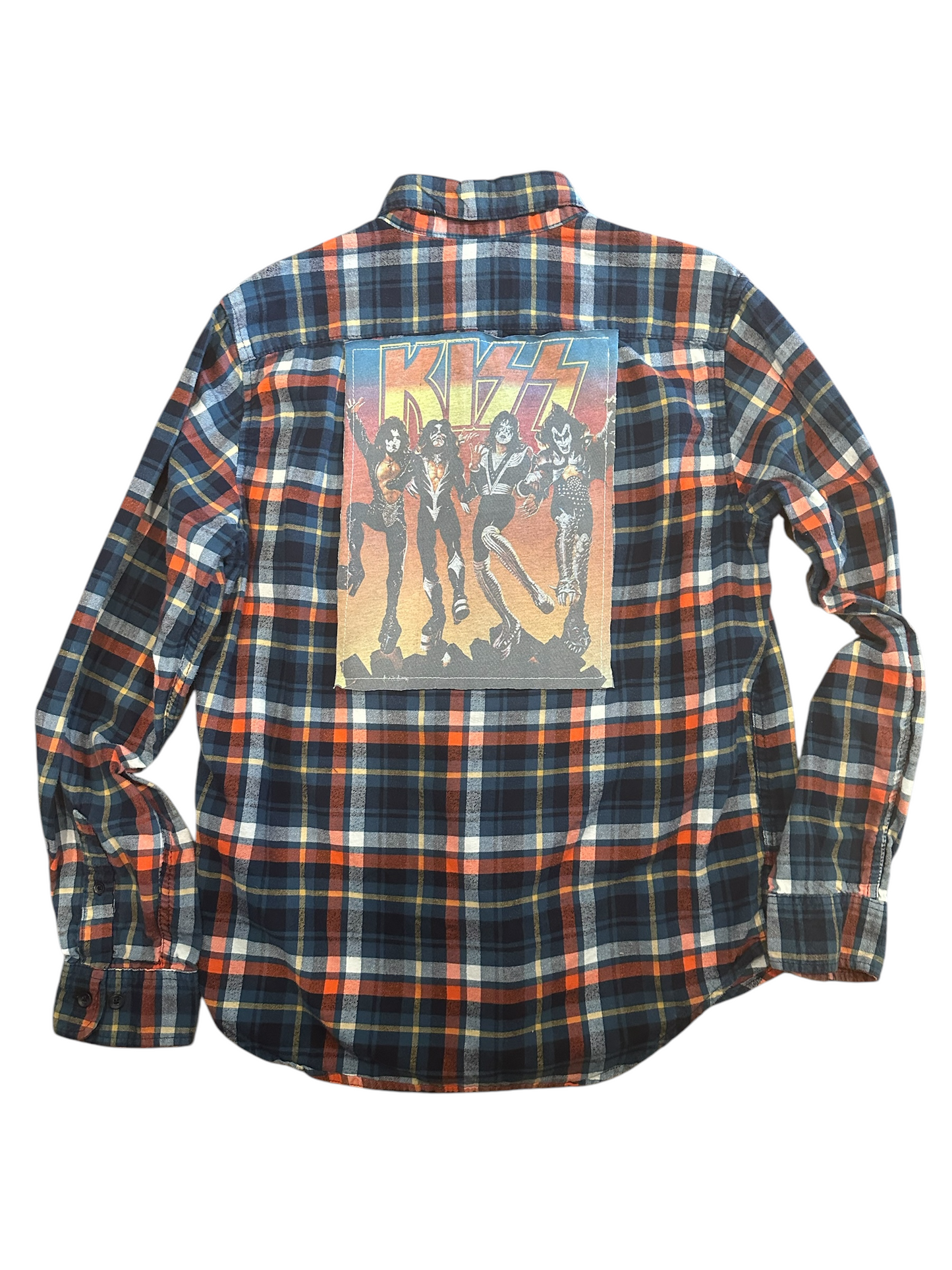 Vintage Repurposed KISS Flannel! This fits like a M-L. Features a "KISS" patch.