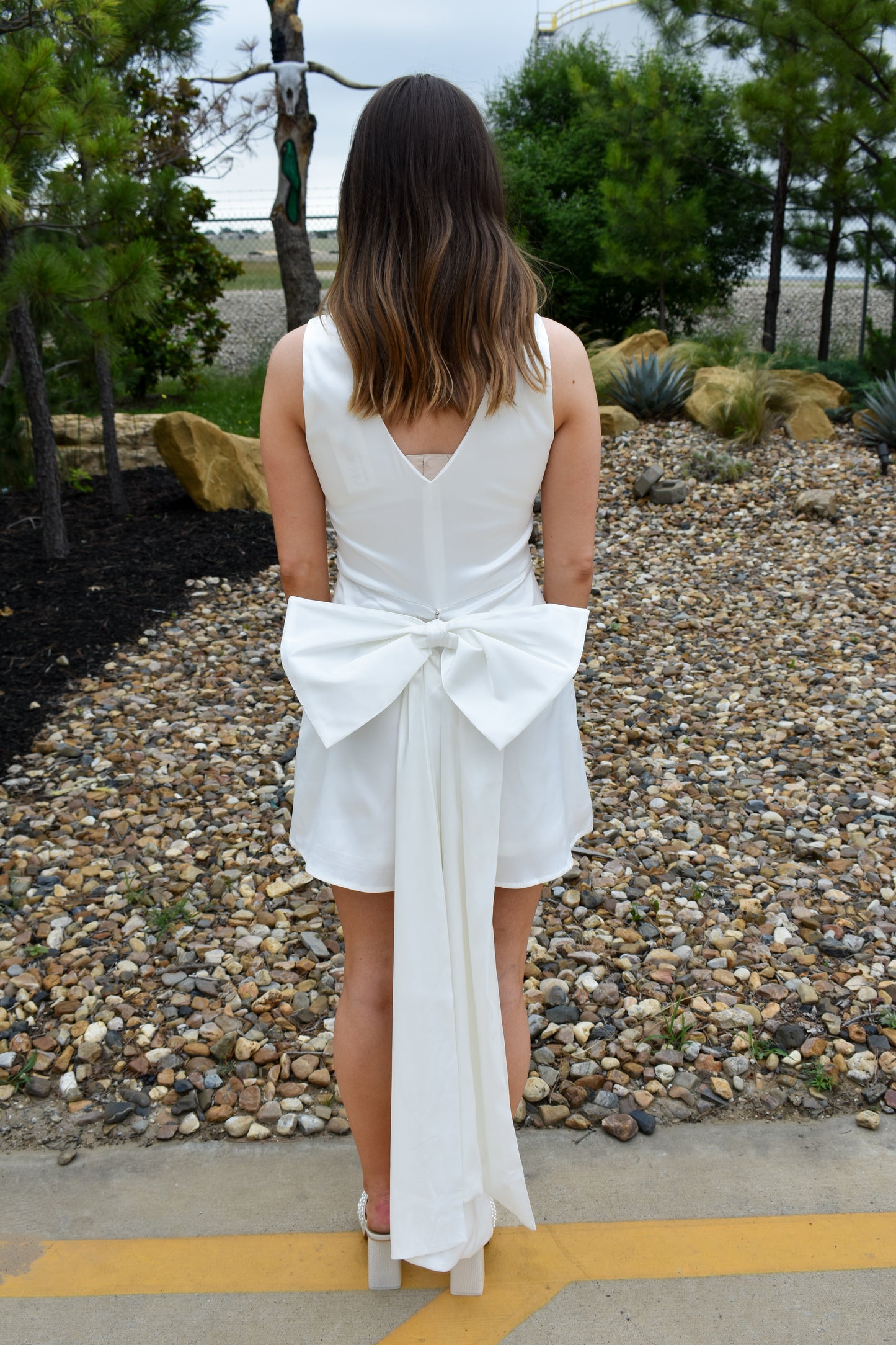 Wedding bells are ringing! This White Satin Bow Dress is the perfect dress for all of your bridal events.