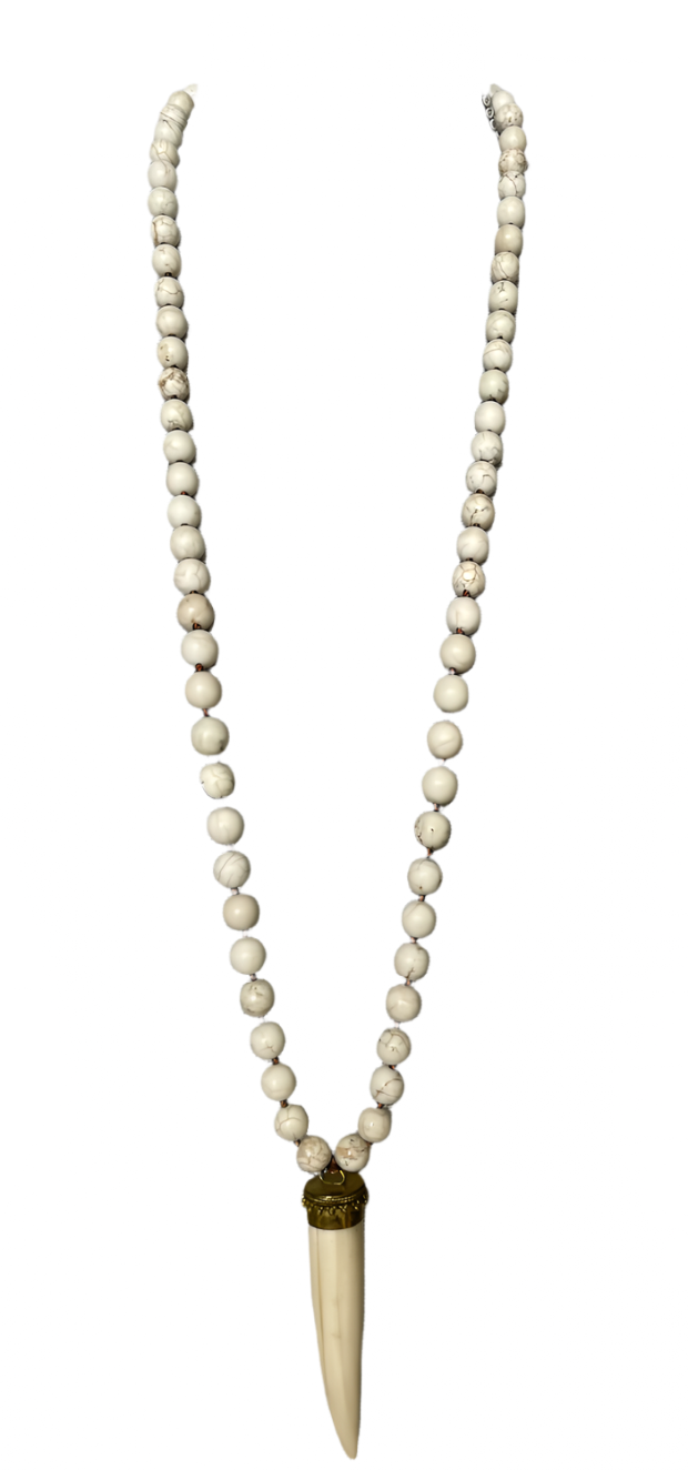 This Beautiful Hand Knotted necklace is 34" Long And has a White Bone Horn