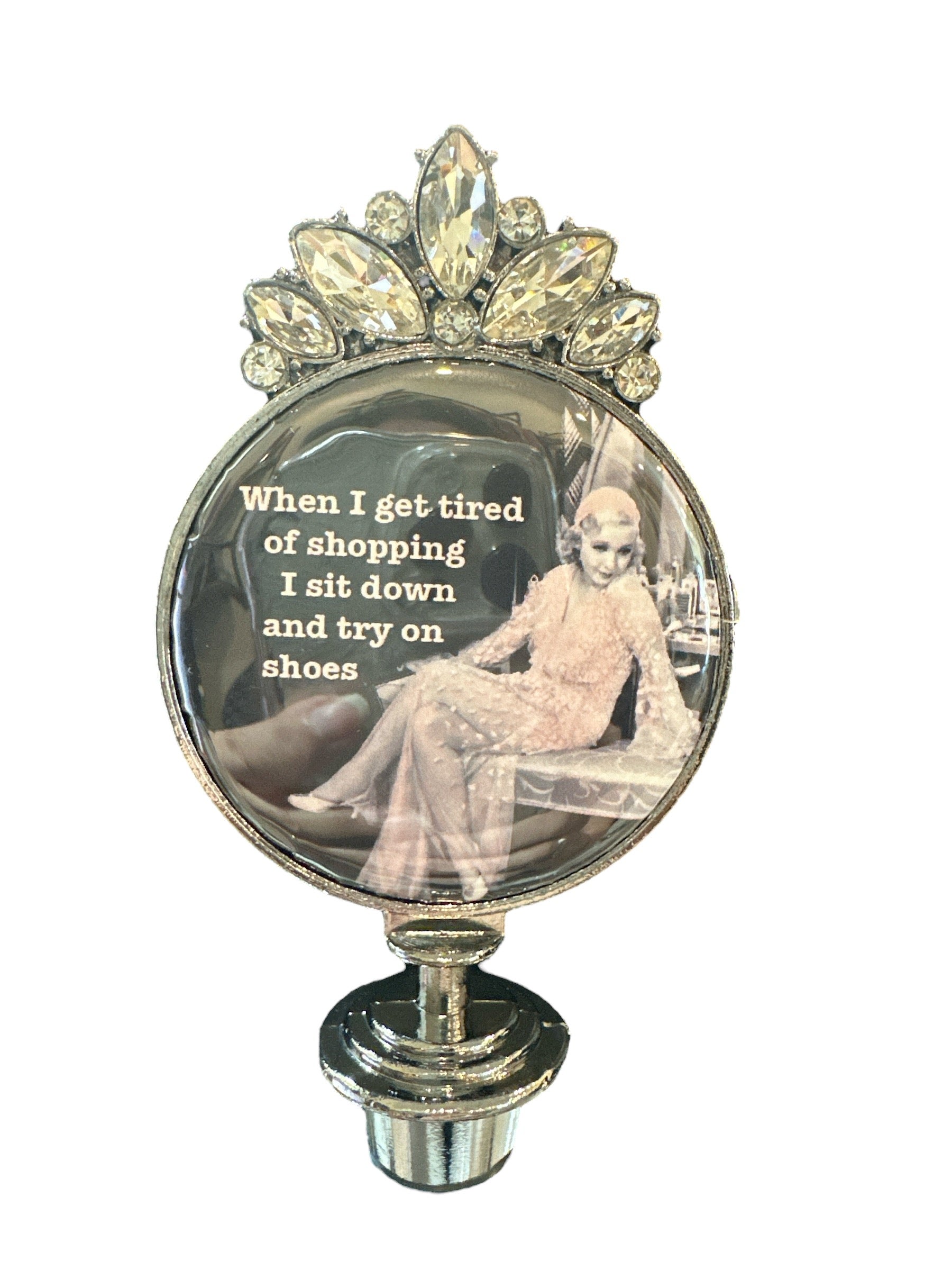 Introducing the My Favorite Things Wine Stopper — where elegance meets wit. Featuring the line “When I get tired of shopping, I sit down and try on shoes,” this glam stopper celebrates life’s finer priorities: retail therapy and a good glass of wine.